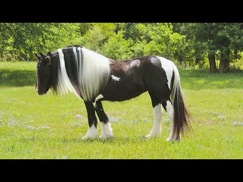 ⚜️𝐭𝐡𝐞 𝓔𝓵𝓲𝓽𝓮 𝐒𝐩𝐫𝐢𝐧𝐠 𝐂𝐥𝐚𝐬𝐬𝐢𝐜⚜️ Happening now thru MONDAY | APRIL 20th - Available EXCLUSIVELY on HorseBid's website! For more details and to register visit: www.Horsebid.com CONSIGNOR CONTACT: Slide M Performance Horses 417-430-3199 LOCATION: Dublin, TX BREED: Gypsy Vanner REGISTERED: No REGISTERED NAME: Daphne COLOR: Black and White Paint HEIGHT: 13.3 AGE: 5 GENDER: Mare Easily the most gentle horse we’ve ever had in our barn, Daphne is our go-to girl when we need something safe and reliable. Daphne is the kind of horse every family wants and needs—truly one for the whole family, from little kids to grandmas. Not only does Daphne have the classic black-and-white coloring, she also has a beautiful, thick mane and tail, along with feathering on her feet for that classic Gypsy Vanner look. This mare has an old soul and the kindest disposition. She meets you at the gate every day, ready for love and attention, and will put her head in the halter for you. Unlike most drafts, Daphne is very respectful on the ground and follows quietly while being led. She matches the pace of a slow handler, always being mindful of your space. Daphne will stand tied like a statue all day long to be brushed, fly-sprayed, saddled, bridled, shod, and bathed. You won’t hear a peep from Daphne, as she is not buddy-sour and not the type to holler for other horses. Daphne will walk out on the trails confidently with a herd or by herself, crossing mud, rivers, creeks, and going up and down steep, rocky hills without a wavering step. She has been trail ridden all over the U.S. She hauls great and doesn’t cause a fuss, loading into an open stock or slant trailer and backing out easily. On top of trail riding, Daphne has been ridden down county roads with passing cars, trucks, trailers, and wildlife, never blinking an eye at anything. Daphne is also a beautiful mover in the arena. She has a steady and controlled walk, trot, and lope, with a smooth stop and a cute turnaround. Daphne rides one- or two-handed and moves off leg pressure. You can also comfortably ride her bareback in a halter if that’s what you desire! This mare is truly the do-it-all type with the demeanor to match. From trail riding to arena work to obstacle patterns, she’s your go-to girl for all things and all ages. She is 100% sound with zero buck, kick, rear, or bite. She has clean, straight legs. PPEs welcome!