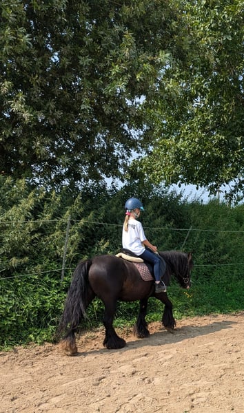 "Tiffany" is op haar 6e al zeer betrouwbaar en werkwillig. Ze wordt bij ons ingezet voor paardrijdagogiek en longeerlessen en doet haar werk heel goed. Ze staat in een gemengde kudde en houdt van afwisselend werk. Ze is barhuf en het inladen is helemaal geen probleem. Als u Tiffany graag wilt leren kennen, neem dan gerust contact met ons op.