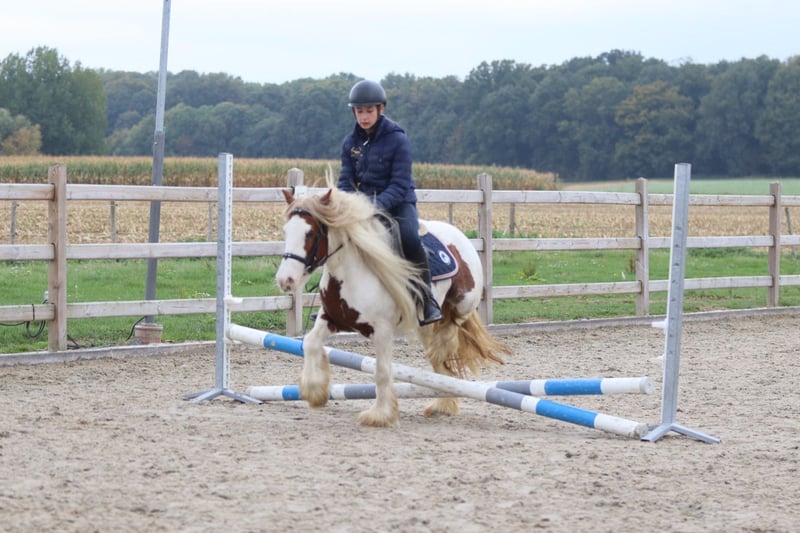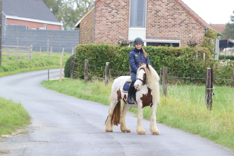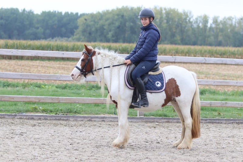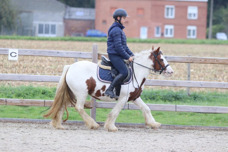 Ce magnifique poney Tinker pie est un véritable rêve d'enfant ! M+M est son nom. ✨ Âge : 7 ans ✨ Sexe : jument ✨ Taille au garrot : 1m27 M+M est très bien construite et a une magnifique crinière et une queue fournies avec lesquelles les enfants peuvent faire des tresses sans fin. Elle est calme sous la selle, prend facilement un petit saut et apprécie les balades en extérieur. De plus, elle s'entend très bien avec d'autres poneys dans le pré ou l'écurie. 📞 Plus d'infos ? Appelez ou envoyez un WhatsApp : 0032 475 68 22 43 🎥 Des vidéos sont disponibles sur notre site web – n'hésitez pas à demander le lien !