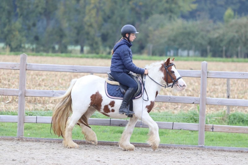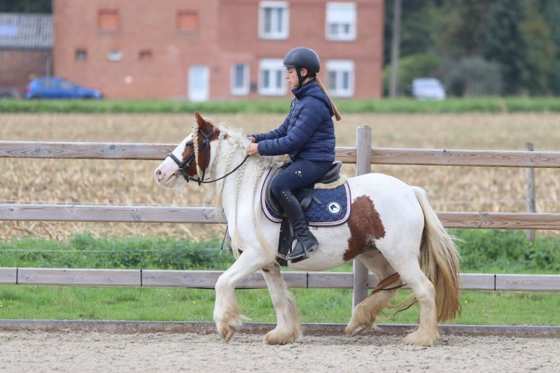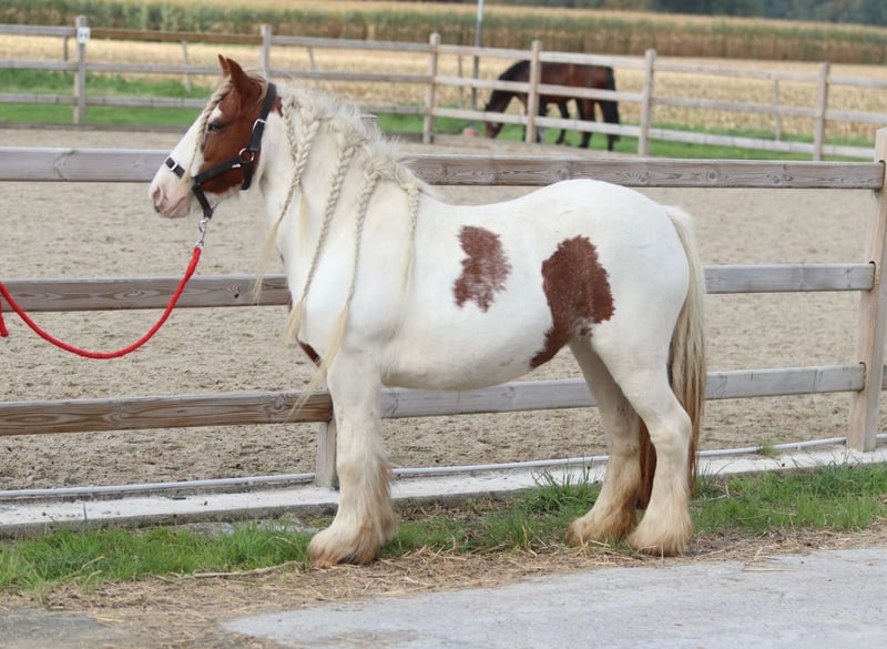 This beautiful chestnut-and-white Tinker pony is a true children's dream! Her name is M+M. ✨ Age: 7 years ✨ Gender: mare ✨ Height: 1m27 M+M is very stocky and has a lush mane and tail, allowing children to make endless braids. She is well-behaved under saddle, easily takes a small jump, and enjoys pleasant outdoor rides. Additionally, she gets along well with other ponies in the pasture or stable. 📞 Need more info? Call or WhatsApp: 0032 475 68 22 43 🎥 Videos can be found on our website – feel free to request the link!