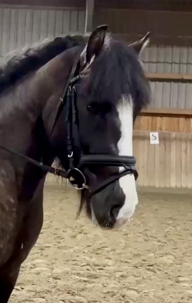 A stunning 2019 Gypsy Vanner mare is available for sale. Meadow has a height of approximately 150 cm and covers well. She was backed at the end of 2024 and is currently riding at a solid E/A level in dressage. She also enjoys jumping small obstacles and has a great fondness for pole work. Riding out alone or in groups is no problem. Typical of her breed, Meadow is very intelligent and can be a bit stubborn, so she is not exclusively suitable for children. She will be sold into the best hands, as our daughter wishes to move up to a larger horse. Her teeth were done in September 2025, she is regularly vaccinated and dewormed, and she is barefoot. A recent health check from March 2025 is available for viewing. An English passport is on hand. Further information is gladly provided in a personal conversation. Written inquiries will not be answered; please contact us by phone only.
