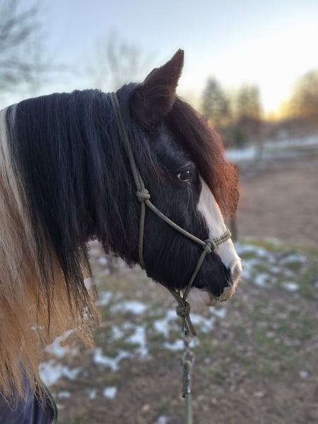 We are offering our wonderful Tinker mare – ideal for dressage and leisure riding. This beautiful Tinker mare was born in 2018 and stands approximately 150 cm tall. She has been trained by us in a gentle and versatile manner and is comfortable riding both in groups and alone in the terrain. She shows talent for dressage. Due to her young age, she is not suitable for beginners or as a children's riding horse at this time and requires a rider who can provide her with confidence. The mare is friendly in handling, well-trained, and demonstrates great talent and willingness to learn. Perfect for riders looking for a horse with a big heart. If you are interested or have further questions, please feel free to contact me. A trial ride is possible for a fee of 35 euros.
