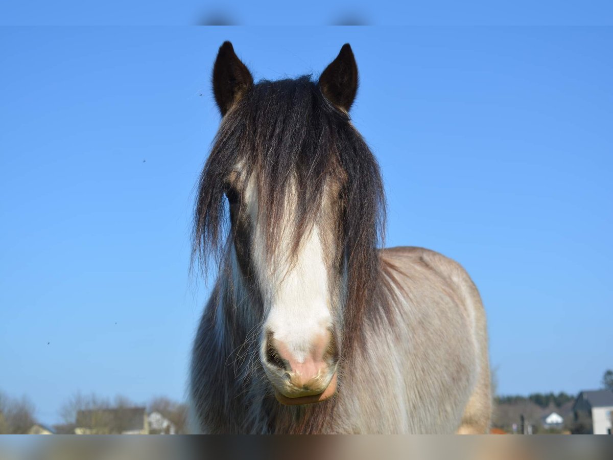 7-jähriges Irish Cob-Stutpferd, ca. 1,55 m groß, mit einer isabellfarbenen Fellfarbe. Das Pferd ist aktuell gegen Tollwut, Wurmkur, Zahnarztbesuche und Hufpflege geimpft und entwurmt. Es ist nicht eingeritten und nicht beschuht, aber bereits im Umgang, wurde schon einmal auf dem Rücken geführt, mit Sattel und Gebiss, allerdings wurde das Training noch nicht vertieft. Sie ist nicht schreckhaft und ist es gewohnt, Traktor, Auto, Hunde und Katzen auf der Weide zu sehen. Während Ausritten hat sie keine Angst vor Autos oder Mopeds. Sie ist sehr neugierig und offen. Sie ist dem Menschen sehr zugetan. Sie liebt es, gestreichelt zu werden, und begrüßt Sie mit einem Wiehern. Das Pferd muss unbedingt das ganze Jahr auf der Weide verbringen! Sie wird nur in eine liebevolle Familie abgegeben, die ihr einen Artgenossen (Pferd, Schaf oder anderes Tier) auf der Weide bietet, da sie andere Tiere mag. Bérénice ist eine reine Rasse, ich bin die erste Besitzerin. Sie kam nach dem Absetzen beim Züchter (Gent) zu mir.