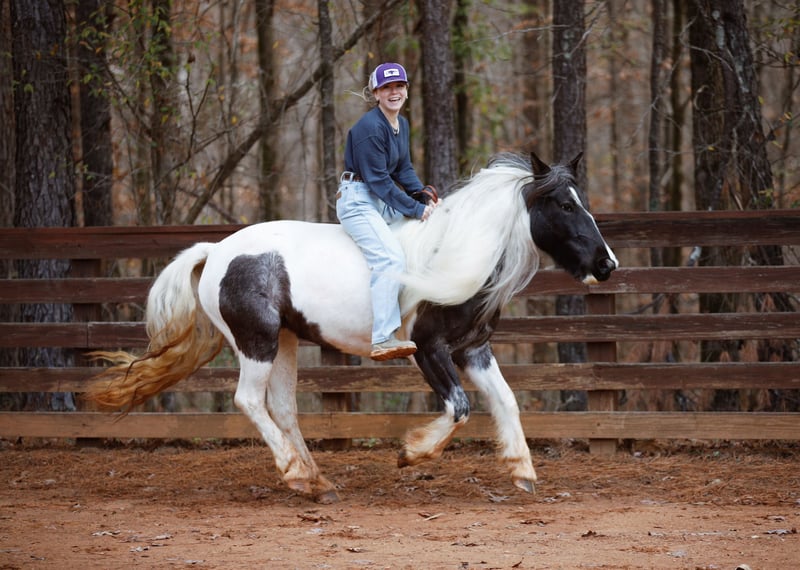 🎄𝐓𝐇𝐄 𝑯𝒐𝒍𝒊𝒅𝒂𝒚 𝐂𝐋𝐀𝐒𝐒𝐈𝐂🎄 Happening now thru MONDAY | DECEMBER 15th - Available EXCLUSIVELY on HorseBid's website! For more details and to register visit: www.Horsebid.com CONSIGNOR CONTACT: Brenna Hurt 660-676-2592 LOCATION: Rutledge, GA BREED: Gypsy Sport Horse REGISTERED: Yes REGISTERED NAME: ML FARMS LUNA COLOR: Blue Roan Tobiano HEIGHT: 14.1 AGE: 6 GENDER: Mare It is absolutely my pleasure to introduce you to the most beautiful, unique, intelligent, and sweet horse I have ever owned! Luna is a six year old, Blue Roan Tobiano, Registered Gypsy Sport Horse mare. Gosh I’m not even sure where to start honestly. Every second of having this gorgeous girl has been an absolute joy. From the day she came to me I have been absolutely enamored by her, and so has everyone else that has ever came in contact with her! She is absolutely breathtaking, kind, and so incredibly smart! “Lou” has been my personal horse all this year. I’ve taken her far and wide across many states on many adventures! From day working, gathering hundreds of head of cattle in all types of conditions, to parades, overnight trips, dragging calves, trail rides, and many days just having fun at the arena. She has been so incredibly fun to have! Everywhere we have been I have been proud to have her. Every person I meet that asks me about horses, I have eagerly shown them pictures of her and every time they simply say “wow.” Not only is she as pretty as they come, she rides like an absolute Cadillac. Luna is super soft with an easy one hand neck reign in all gaits and directions. She’s even so broke you can forget the saddle and bridle and just have fun with a neck rope if you wish! Luna has had several months of professional training variously through her life. She’s been ridden western and English and is a super fancy mover and is brave enough to cross all sorts of obstacles! Lou is also the absolute sweetest horse ever, she absolutely LOVES attention and specifically butt scratches. She will flat out catch you in the pasture for all the pets and attention she can get. Luna is super easy to handle. She’s very gentle, good to shoe, load, bathe, saddle, ect! I’ve even left her off for several months at a time and had no issues! She is super easy keeping, healthy, and 100% sound! And don’t worry.. I promise her mane isn’t too terribly hard to upkeep, and it typically stays at least at her knees! This girl has good feet and good clean legs, she is also athletic enough and has a foundation to do absolutely anything in the world with. I stand by her 100% and am going to absolutely cry when she goes.. but I am so excited to see what her future holds with her new home! If you are wanting a truly one of a kind mare that will get you noticed and be your best friend for life. Luna is your girl! Please feel free to get ahold of me with any questions or if you’d like to come see this incredible mare, I promise you will not be disappointed! I hope she goes to the absolute best home out there, because that is what she truly deserves.