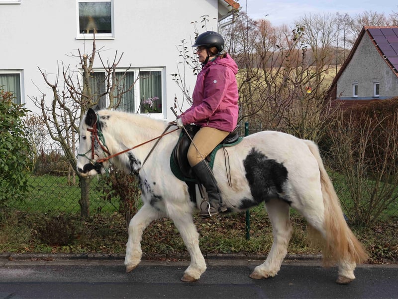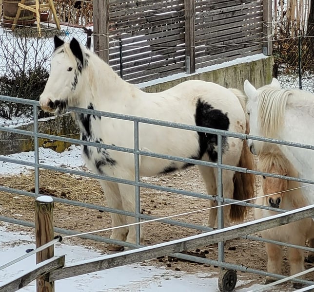 Fiona jest z nami od roku. Jest przyjazna, towarzyska i spokojna w obsłudze. Jeździliśmy na niej na placu, w terenie i w okolicy. Pracowaliśmy z nią na lonży, prowadziliśmy na spacerach, a także wykonywaliśmy ćwiczenia na ziemi i trening z kantarem. Niestety, tutaj ma zbyt mało zajęć. U poprzedniego właściciela spędziła trzy lata. Została oddana do profesjonalnego treningu westernowego w stylu Parelli (co jest dla nas nieco trudne, ponieważ jeździmy głównie na angielskim z elementami Bruns/Behr). W maju 2024 roku urodziła źrebię. Miała tam młodzieżową partnerkę do jazdy i była wykorzystywana podczas dziecięcych przejażdżek z prowadzeniem. Była także używana jako koń do trzymania, co robiła bardzo dobrze. W tamtym czasie nazywała się Tinkerbell. Fiona (Ballindown Six) posiada irski paszport (Leisure Horse Ireland), bez rodowodu, data urodzenia 1 stycznia 2018 roku. Jednak według weterynarza jest raczej o rok młodsza. Mieszka z nami razem z Highland pony i dwoma kucami Shetland. Z tego powodu dostęp do siana i czas na pastwisku są ograniczone. Nie pasuje tu do końca, potrzebowałaby więcej przestrzeni, większego padoku oraz zimowego wypasu lub paddock trail. Najlepiej, gdyby nie była w grupie z kucami Shetland. Jest zdrowa, zaszczepiona przeciwko IT, jej kopyta są pielęgnowane co 6 tygodni, a regularnie odrobaczana. Ponieważ jest jeszcze młoda i ma niewielkie doświadczenie jeździeckie, szukamy dla niej doświadczonego, konsekwentnego jeźdźca. Nie jest to koń dla początkujących.