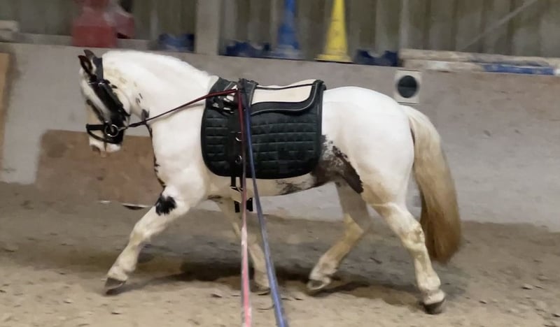 9-jährige Tinker-Scheckstute, ca. 1,35 m, mit sehr gutem Charakter. Brav, zuverlässig und menschenbezogen – auch von (Klein-) Kindern geritten. Sicher in allen drei Grundgangarten, geländesicher auch alleine. Verlade- und schmiedefromm, kennt Bodenarbeit, gebisslos & ohne Sattel reitbar. Tierärztlich durchgecheckt, kerngesund, Zähne frisch gemacht. Vielseitig einsetzbar für Freizeit, Familie oder ambitionierte Ponyreiter. Preis: 5.800 € VB | Standort: Würzburg