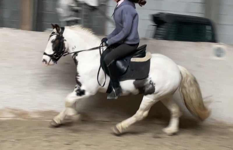 Zum Verkauf steht eine 2017 geborene, ca. 135 cm große Tinker-Scheckstute mit sehr gutem Charakter und absolut unkompliziertem Wesen. Sie ist brav, ehrlich und menschenbezogen und macht im täglichen Umgang alles geduldig mit. Auch von Kindern gut händelbar. Unter dem Sattel zeigt sie sich zuverlässig und gelassen in allen Grundgangarten. Besonders viel Freude bereitet sie beim Springen (E-Niveau), hier zeigt sie Vermögen und Spaß, ist dabei aber stets kontrollierbar. Sie ist geländesicher, kennt Bodenarbeit, Longenarbeit und ist auch gebisslos reitbar. ✔️ verlade- & schmiedefromm ✔️ barhuf, ekzemfrei ✔️ gesund, fit und korrekt ✔️ kennt Kinder ✔️ Equidenpass vorhanden Ideal geeignet für: Familie, Kinder, Jugendliche, Freizeitreiter oder als verlässliches Allroundpony. 📍 Standort: Würzburg 💶 Preis: 8.900 € – gut verhandelbar bei zügiger Abwicklung Bitte geben Sie bei Ihrer Anfrage eine Telefonnummer an.