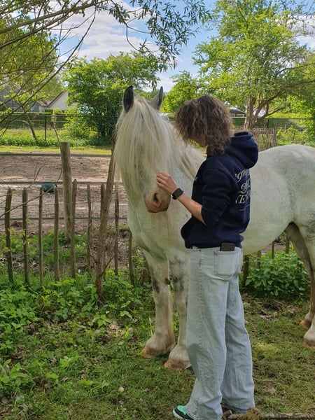 Diese wunderschöne junge Dame sucht ein neues 5-Sterne-Zuhause. Coco kam als Fohlen aus Irland zu mir. Bei mir hat sie alle Grundkenntnisse gelernt. Letztendlich musste ich sie aufgrund einer Scheidung verkaufen, und sie verbrachte zwei Jahre in Belgien, wo sie weiter geritten und für die Kutsche ausgebildet wurde. Durch das fortgeschrittene Alter ihres damaligen Besitzers ist sie wieder zu mir zurückgekehrt. Ich kann sie jedoch nicht behalten und bin nun auf der Suche nach einem neuen Zuhause für sie. Coco ist eine liebevolle, sanfte Stute, die dennoch ihren Charakter zeigt. Außerdem ist sie eine echte Tinker, manchmal etwas schwerfällig. Sie stand immer mit anderen Pferden zusammen und hat keine gesundheitlichen Probleme. Sie wurde negativ auf PSSM getestet. Unter dem Sattel kennt sie das Gebiss sowohl gebisslos als auch mit Zäumung, aktuell wird sie gebisslos geritten. Im Dressurviereck reitet sie problemlos allein, bei Ausritten im Gelände braucht sie noch die Unterstützung eines anderen Pferdes. Coco braucht eine selbstbewusste Person, die konsequent ist, da sie manchmal noch etwas unsicher sein kann. Hat jemand Platz im Herzen für dieses hübsche Mädchen?