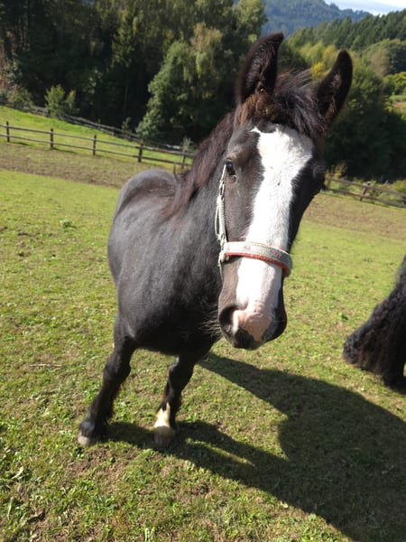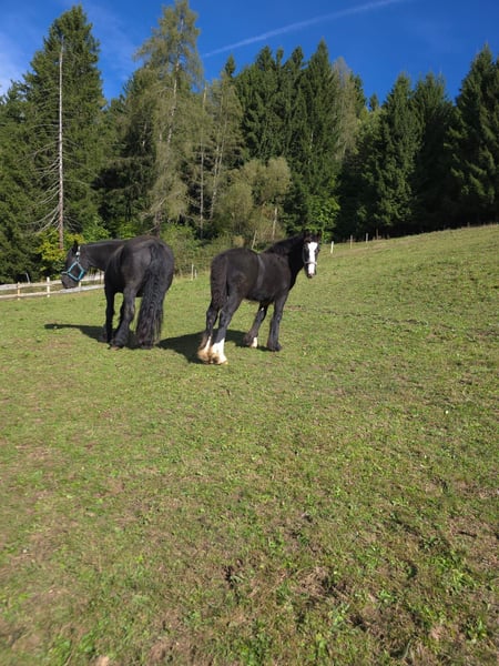 Beautiful Tinker mare Fanny, born on May 5th, 2025, is looking for her new dream home. Fanny is an elegant black beauty with a distinctive white blaze and a white sock. She is naturally somewhat shy but is very gentle and eager to learn in her interactions. With the right handler, she quickly builds trust and wants to please. She is an excellent partner for people who appreciate a sensitive, refined horse and prefer to work with calmness and patience. Profile: Date of Birth: 05.05.2025 Breed: Tinker Gender: Mare Color: Black with white markings (blaze, sock) Temperament: Calm, sensitive, gentle Fanny is perfect for someone who desires a close bond with their horse and enjoys nurturing and developing a young horse.