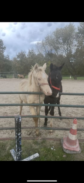 For sale is a typey Tinker stallion born on May 21, 2025. He is in the rare champagne color with green eyes and already displays a very baroque conformation. The expected final height is approximately 13.5 hh. The stallion is healthy and is already familiar with basic foal handling. A promising foal with a stunning color and presence, suitable for leisure, show, or future breeding.