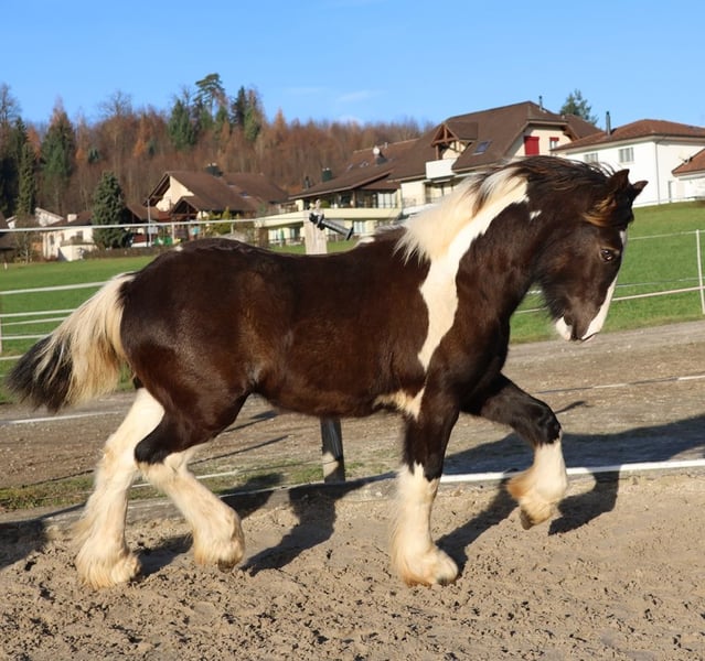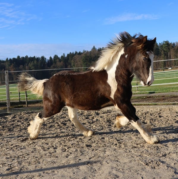Zum Verkauf steht dieses aussergewöhnliche Tinker Hengst Fohlen, Saturo Jiro. Er besticht nicht nur durch seinen Charakter sondern vor allem durch seine tolle Erscheinung. Das absolute Highlight sind seine Augen, die ihm ein majestätisches Aussehen verleiht und ihn zum absoluten Hingucker machen. Sein gepflegter Behang unterstreicht sein harmonisches Gebäude und verleiht ihm eine ganz besondere Ausstrahlung. Geboren am 15.4.2025 End Stm. ca. 148 bis 150cm Farbe: Smoky Black PSSM: n/n Pass mit Eingetragener Abstammung: Vater: Pearl Ambition (letzten 2 Bilder) Mutter: Zendaya