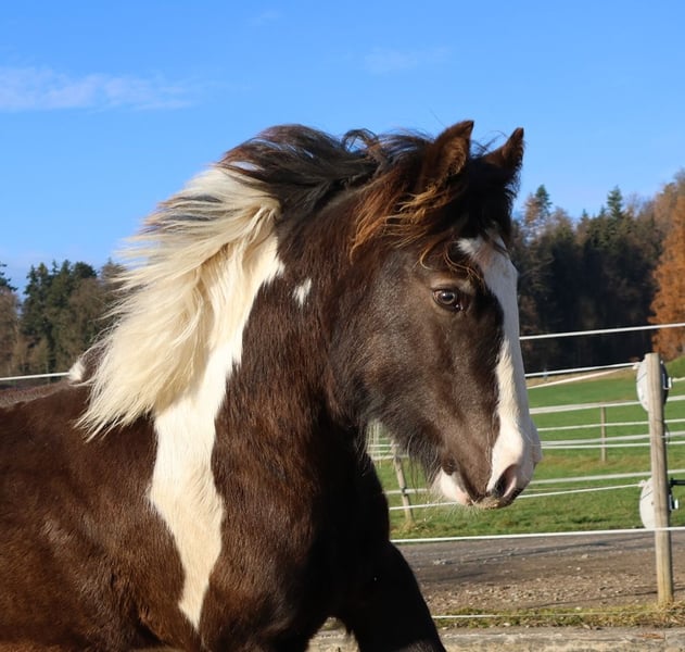 For sale is this exceptional Tinker colt, Saturo Jiro. He impresses not only with his temperament but especially with his striking appearance. The true highlight are his eyes, which give him a majestic look and make him an absolute eye-catcher. His well-groomed mane emphasizes his harmonious build and gives him a very special presence. Born on April 15, 2025 Approximate height: 14.8 to 15.0 hh Color: Smoky Black PSSM: n/n Registered pedigree with documentation: Sire: Pearl Ambition (see last 2 pictures) Dam: Zendaya