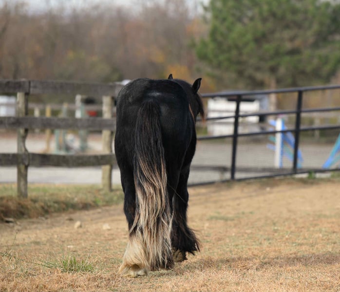 "AVAILABLE ON ONLINE HORSE AUCTION AT www DOT MagicHorseAuction DOT com BIDDING OPEN NOW thru TUESDAY | December 9TH! - BUY IT NOW AVAILABLE! *Final price will be determined on auction site* CONSIGNOR CONTACT INFO: Roni Renee Turner 610-806-2613 LOCATION: New Holland, PA “Leafy Lane Slim Shady” aka “Shady”, is a registered Gypsy Vanner colt, foaled on April 16th 2024, currently standing 13hh, who already owns a lush mane, tail, and feathers. If you are looking for a phenomenal brain, wonderful conformation, great breeding, and the looks to pair, here is your guy. Not only is Shady as friendly as they come, he has a very calm demeanor and an old soul. This boy was quite literally “born broke”. I really cannot say enough of good things about Shady, he is going to make the perfect partner for someone who is looking for a loyal and gentle friend. In the barn, Shady has zero bad habits. He can live in or out, goes out with others happily and has zero bad stall habits. He is quiet in his stall, neat, and never complains or asks for anything. He can live out 24/7, he does not mind either way. Shady will always be the first one to greet you, he will follow you around like a puppy dog and loves attention. He cross ties and straight ties. Shady will stand on the cross ties all day long to be groomed, braided, loved on, you name it. He stands to be bathed as well. Shady is safe for absolutely anyone to work around. He is very gentle and safe for kids and beginners to work with. He doesn’t mind my rowdy dogs running all around his feet. He picks up his feet and is good for the farrier and vet. A crazy busy barn is not frightening to Shady, it is amusing and he will just sit there and chill and watch all of the commotion. Shady has excellent ground manners. He can be fully handled, led, caught, etc by beginners and children. He has had extensive ground work, and he was raised correctly. Shady has gone on hand walks through the woods, through trail obstacles, through water and fields, he is going to be an amazing trail partner in the future. The brain that this young man has, is just not comparable. Shady lunges, and listens to voice commands. He has been tacked several times and never once had a reaction. We have started him on ground driving as well; and again he caught right on and did what was asked. I don’t know if I have ever been around such a teachable yearling!! Shady has been through lots of desensitizing. He takes everything in stride and is pretty much unfazed by all of our crazy antics. He will walk over a tarp, even with it blowing right at him and getting caught on his legs. He doesn’t mind if the tarp is flapping 15’ in the air. He will play with a big ball, and doesn’t mind it being on or around him. We have waved a large flag all around him, he didn’t mind. He follows the wagon with a little “pony” in it, and was much more interested in eating the hay inside of the wagon lol. Atvs and other machinery? Traffic? No problem, he chases the Ranger in the pasture to catch us for hay. Lead him from the four wheeler. Dogs running all over? He doesn’t care. Cows? Cows are friends. Shady has also been introduced to trail obstacles such as walking through pool noodles, over ground poles, over flower boxes and even jumped a few cross rails in hand. He loads and trailers well, with or without company. Shady is going to be easiest guy to start, the hard part is done, here is a horse that is ready to start your way, and be your forever partner. Shady is sired by a stallion named “Monashee Toy Story”, a strapping sire who is beautiful marked. Also known as “Buzz” is considered a mini-Gypsy. He attended the 2023 Gypsy Vanner Congress and is known for his good demeanor and athleticism. Shady’s dam is named “Wellington Kenai”, who is a spitting image of Shady, with great conformation, big bone, and wonderful hair. She is a regular sized Gypsy. Shady is expected to finish at around 14.1-14.2hh. On his Sire’s side, the name “North Star Maestro” will be found, who is a significant representative of the GVH breed, possessing some of the best GV bloodlines. Shady’s top side also goes back to the famous “Bob The Blagdon”. On Shady’s bottom side, he goes back to “Romany King” and influential stallion known for his conformation, amazing temperament, and wonderful movement. Romany King earned a five star evaluation by the GVHS. Slim Shady has excellent breeding, in which has created an amazing all around yearling. Whether you are looking for an all around gelding or a herd sire, these bloodlines speak for themselves. Shady is PSSM1 n/n, FIS n/n, and a/a, E/e, N/W20. Here is a colt that is currently set up to head in absolutely any direction. He has been so wonderful to work with, teach, and have around. Shady is very intelligent, and loves to learn. I would love to have the opportunity to follow this boy and watch him grow and learn, I am very fond of him, the whole barn is. And while I would love to find him his forever person, I am not pressed to sell him, as I just know that he is going to be amazing and very easy to bring along. Please take the time to watch Shady’s full video to get a feel for the type of wonderful guy that he is. Please feel free to reach out for any further information. Shipping can be arranged anywhere.