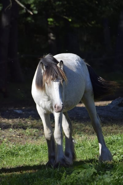 Buckskin Tigerschecke hengstveuln zoekt een nieuw thuis. Toffee, zijn moeder, is een Few Spot merrie en zijn vader een gekeurde Buckskin-Pearl hengst. Hij heeft papierwerk van ICS NL met afstamming. Geboren op 18 mei 2024, zijn verwachte eindmaat ligt tussen de 138 en 145 cm. Hij is volledig agouti, wat betekent dat hij alleen bruine en voskleurige nakomelingen kan krijgen en nooit een rappen kleur zal hebben. Door het creme en LP kunnen Palomino en Buckskin Tigerschecken voorkomen. Farbgenetica: AA, Ee, LP/n, CR/n Bij hem zijn PSSM, FIS, HYPP, GBED, MH en HERDA allemaal negatief getest. Omdat het een particuliere verkoop betreft, worden garantie en retour niet aangeboden. Ik sluit elke aansprakelijkheid voor verborgen gebreken uit. De opbrengst wordt direct weer gebruikt voor de voeding en verzorging van de dieren.