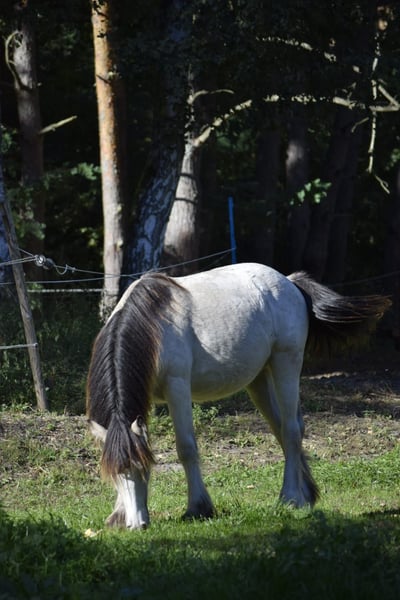 Ogier kasztanowaty, klacz z gniadą tigercheck, szuka nowego domu. Toffee, jego matka, jest klaczą typu Few Spot, a ojciec to licencjonowany ogier buckskin-pearl. Posiada dokumenty ICS NL z pochodzeniem. Urodzony 18.05.2024, przewidywana końcowa wysokość to około 138-145 cm. Jest całkowicie agouti, co oznacza, że może mieć tylko potomstwo w kolorach brązowym i ognistym, nigdy rudy. Dzięki genowi kremowemu i LP mogą wystąpić palomino oraz buckskin tigercheck. Genetyka koloru: AA, Ee, LP/n, CR/n. U niego wykluczono obecność mutacji PSSM, FIS, HYPP, GBED, MH, HERDA – wszystkie testy są negatywne. Ze względu na sprzedaż prywatną brak gwarancji i zwrotów. Wyłączam wszelką odpowiedzialność z tytułu wad fizycznych. Dochód ze sprzedaży zostanie przeznaczony na pokrycie kosztów karmienia i opieki nad zwierzętami.