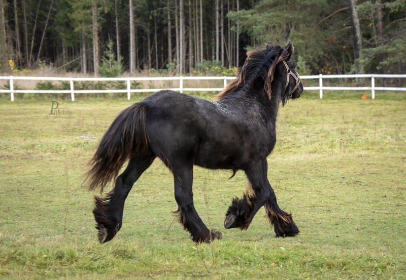 Lernen Sie diesen hübschen jungen Fohlen kennen, geboren im September 2024, mit einer erwarteten Endgröße von etwa 155 cm / 15 hh. Von Anfang an zeigte er eine sanfte und neugierige Natur – ein wirklich unkomplizierter Begleiter in jeder Hinsicht. Geboren im September 2024, wird er voraussichtlich ca. 155 cm / 15 hh groß werden. 🐴✨ Arthur ist derzeit 13 Monate alt und misst 13 hh / 135 cm. Dieser hübsche Kerl hat ein sehr freundliches und unkompliziertes Temperament, was die Handhabung und Arbeit mit ihm sehr angenehm macht. ✅ Gesundheit & Pflege: PSSM n/n; G/n (zusätzliche genetische Tests auf Anfrage erhältlich) DNA-verifizierte Abstammung, eingetragen im Irish Cob Pass (FSIC ry) Gesund, geimpft, entwurmt und regelmäßig getrimmt Er ist gut an der Hand, kann sowohl in einer Box als auch auf einer elektrisch eingezäunten Weide problemlos leben. Wenn Sie nach einem gutmütigen jungen Fohlen mit großem Potenzial suchen, ist er genau der Richtige! Standort in Estland, Transport weltweit möglich.