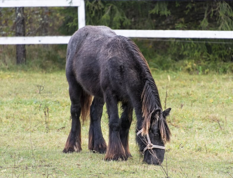 Meet this handsome young colt, born in September 2024, expected to grow to around 155 cm / 15hh. From day one, he’s shown a gentle and curious nature – a truly easy-going companion in every way. Born in September 2024, expected to mature around 155 cm / 15hh. 🐴✨ Arthur stands 13 hh/ 135cm as an 13 month old. This lovely boy has a very friendly and easy temperament, making him a pleasure to handle and work with. ✅ Health & Care: PSSM n/n; G/n (additional genetic tests available on request) DNA verified breeding, recorded in an Irish Cob Passport (FSIC ry) Healthy, vaccinated, dewormed, and regularly trimmed He is well-handled, can live both in a stable or electric-fenced paddock without issues. If you’re looking for a kind-hearted young colt with great potential, he’s the one! Located in Estonia, with transport available worldwide.