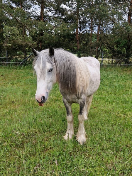 Cooper szuka tymczasowo nowego domu Cooper urodził się na początku czerwca 2023 roku. Ma umaszczenie braunschecke z szarym odcieniem, a w końcowym wzroście osiągnie około 145 cm. Posiada dokumenty ICS z potwierdzeniem pochodzenia od matki (ojciec jest również znany). Cooper to bardzo spokojny ogier, który absolutnie nie wykazuje cech charakterystycznych dla ogierów. Grzecznie pozwala się prowadzić na uwiązie, nawet przez małe miasteczko. Mieszka w majej stadniówce w wolnym wybiegu. Cooper jest lekko wrażliwy na podbrzuszu i tylne nogi, nad tym jeszcze trzeba popracować. Bardzo ważne!!! Nie odbieram wiadomości, proszę kontaktować się pod numerem 0162/9196337. Miejsce ponad cenę!