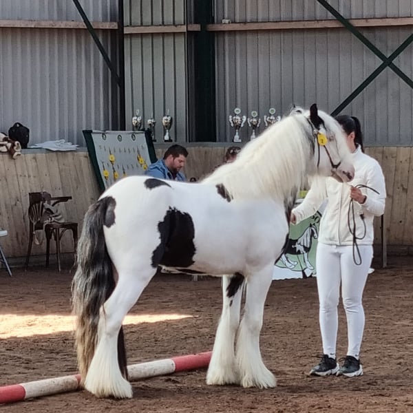 Koń jest naszym zatwierdzonym na całe życie ogierem. Jest ujeżdżony i ma łagodny charakter. Szukamy dla niego dobrego domu.