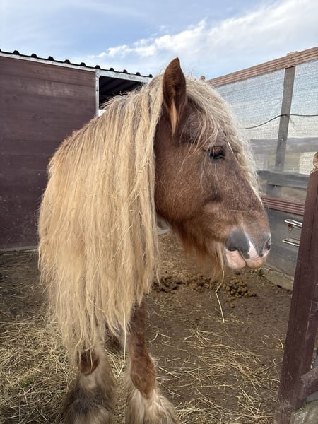 Dreamy Tinker Sirius Black – 8-year-old stallion in a rare color ✨ Character & Temperament Sirius is an absolute sweetheart in daily handling – always friendly, attentive, and incredibly gentle. Approximately 14.2 hh tall. He is: - Load-safe - Well-behaved at the blacksmith - Can stand calmly with mares He is completely kid-friendly! Training Sirius is currently being gently backed and demonstrates a very cooperative, clear mind. He wants to please his handler and learns quickly. Special Features - Rare, striking color, a real eye-catcher - Licensed - Equally suitable for breeding and leisure riding - Due to his gentle nature, also suitable for ambitious beginners – however, I am only placing him in experienced hands because of his age and training. He is registered with the Dutch breeding association through his previous owners. He will only be sold into the best hands! Sirius Black is a very special horse – anyone looking for a loving, social, yet impressive Tinker will find their heart horse here. Videos and additional photos are available upon request. Please only contact me if you are SERIOUSLY interested!!