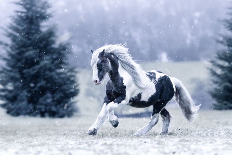 Bentley, an extraordinary name for an equally exceptional and well-behaved stallion. In the stunning color of Black Silverdapple Tobiano, he displays his beautiful appling coat during the summer, allowing his color to truly shine. He is a clear-headed, completely fearless stallion with extremely thick, full feathering and a breathtakingly long mane. He passes on his gentle, unshakable temperament and lush feathering to his foals. Presented twice and awarded both a first premium and the STER stallion distinction, he was licensed in the Netherlands in 2022 at the ICS and achieved 4th place in a strong international field. He has successfully completed his driving test with high scores, earning a first premium and first place. Bentley is well-behaved during hand breeding, even with significantly smaller or larger mares (up to 1.65 m). He is easy to handle and knows how to behave, even when standing next to mares in the stable. All of his foals presented at licensing received a first premium. He is available for breeding with Tinker mares, foreign breeds, and crossbred mares. *PSSM free *Black Silverdapple Tobiano *Homozygous