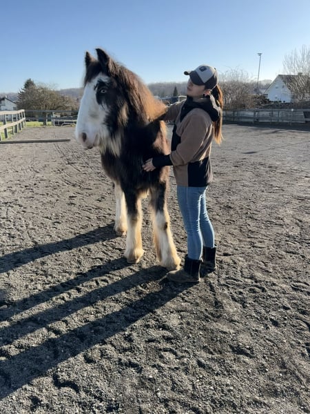 Blue Berry z Vogelweide Urodzony: 28.02.2025 Płeć: ogier Kolor: Black Blagdon Ojciec: Blue Ocean (201510472) Matka: Kingarvan Fancy Nancy (202310316) – ogierka Oboje rodzice mają ponad 146 cm wzrostu i reprezentują typ, fundament i rasową autentyczność. Blue Berry jest zarejestrowany w księdze hodowlanej Irish Cob Society Nederland (ICS NL) i na pokazie źrebiąt otrzymał drugą premię z wynikiem 145,5 punktów – tuż za pierwszą premią. Rozwój i wymiary na dzień 09.11.2025: • 131 cm wzrostu • 280 kg Pokazuje dobry rozwój, prawidłową budowę ciała i harmonijnie rośnie w warunkach odpowiednich dla jego potrzeb. Blue Berry zachwyca zrównoważonym charakterem. • bardzo łagodny w codziennym kontakcie • prowadzi na lonży • zna kowala i chętnie daje kopyta • jest spokojny podczas załadunku • ciekawski i odważny • jednocześnie spokojny, jasny w głowie i dobrze posłuszny Zawsze wykazuje współpracę i jest przywiązany do człowieka – to najlepsze warunki do hodowli lub przyszłej kariery rekreacyjnej. • regularnie odrobaczany • zgodnie z wiekiem szczepiony • kowal odważny Sprzedaż następuje wyłącznie z powodu zmiany zawodowej, która uniemożliwia mi dalsze odpowiednie szkolenie jego. Cena do negocjacji w granicach jego jakości i pochodzenia. Blue Berry zostanie oddany tylko w odpowiedzialne i pełne szacunku ręce.