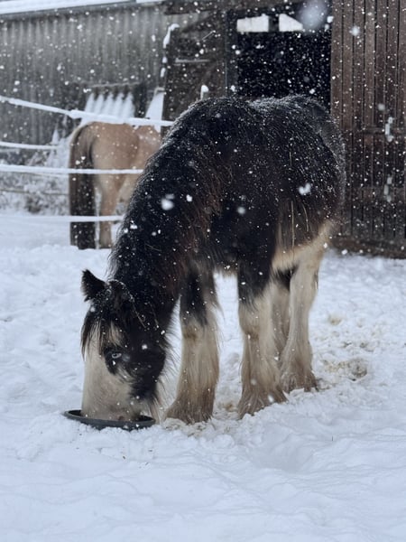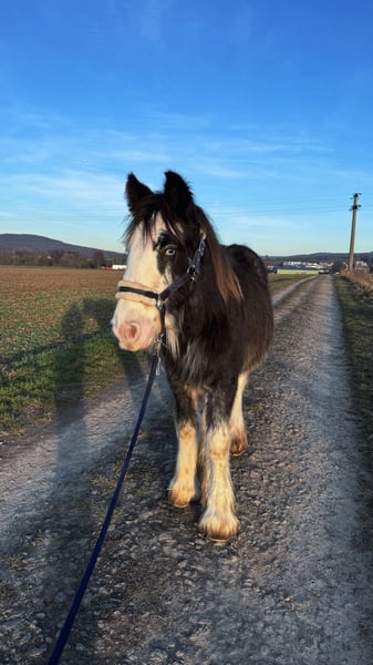 Blue Berry von der Vogelweide Geboren: 28.02.2025 Geschlecht: Hengst Farbe: Black Blagdon Vater: Blue Ocean (201510472) Mutter: Kingarvan Fancy Nancy (202310316) – Ster Beide Eltern verfügen über ein Stockmaß von über 1,46 m und stehen für Typ, Fundament und Rassetreue. Blue Berry ist im Zuchtbuch der Irish Cob Society Nederland (ICS NL) eingetragen und erhielt auf der Fohlenschau die 2. Prämie mit 145,5 Punkten – dicht an der 1. Prämie. Entwicklung & Maße Stand 09.11.2025: • 131 cm Stockmaß • 280 kg Er zeigt eine gute Entwicklung, korrekten Körperbau und wächst harmonisch in artgerechter Haltung auf. Blue Berry überzeugt durch sein ausgeglichenes Wesen. • sehr lieb im täglichen Umgang • halfterführig • kennt den Schmied und gibt brav die Hufe • verladefromm • neugierig und mutig • dabei ruhig, klar im Kopf und gut händelbar Er zeigt sich stets kooperativ und menschenbezogen – beste Voraussetzungen für Zucht oder spätere Freizeitkarriere. • regelmäßig entwurmt • altersgerecht geimpft • schmiedefromm Der Verkauf erfolgt ausschließlich aufgrund einer beruflichen Veränderung, wodurch ich seiner weiteren Ausbildung zeitlich nicht gerecht werden kann. VB im realistischen Rahmen seiner Qualität und Abstammung. Blue Berry wird nur in verantwortungsvolle und wertschätzende Hände abgegeben.