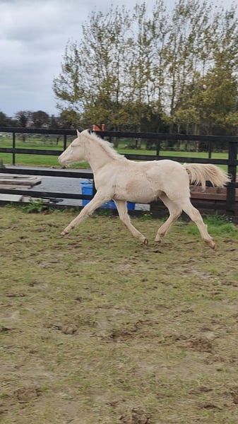 Poznaj Jake'a, olśniewającego źrebięta z wyjątkowym naturalnym ruchem i charyzmą. Przewidywana wysokość w pełni rozwoju to 148 cm, co czyni go idealnym zarówno do sportu, jak i do użytku rodzinnego. Jake jest potomkiem zwycięskiego na pokazach, złocistego dunańskiego ogiera Killea Legend oraz pochodzi z pięknie urodzonej, tradycyjnej klaczy o znakomitych rodowodach, takich jak Leag i Moy Johnny’s Pride. Ma rodziców klasy 1 i jest N/N w testach HWSD, co czyni go bezpiecznym i inteligentnym wyborem na przyszłość w hodowli. Ten źrebię wykazuje ogromny potencjał w ujeżdżeniu dzięki swojemu ekspresyjnemu, płynnemu ruchowi, ale sprawdzi się również jako wszechstronny koń lub rodzinny pupil. Dzięki doskonałemu temperamentu i sprawdzonym rodowodom, Jake to rzadka okazja dla każdego, kto szuka jakości, potencjału i osobowości w jednym. Nie przegap swojej szansy na zdobycie przyszłego champion'a.