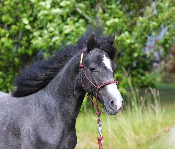 Dein zukünftiger Sport- und Freizeitpartner - Badger’s Hill Jasper Thornton: Jasper ist ein einjähriger Connemara-Jungwallach mit ruhigem, freundlichem Wesen und starker Menschenbezogenheit. Er ist ausgeglichen, angenehm im Umgang und lernt gerne - damit eignet er sich gut für Kinder, Einsteiger sowie ambitionierte Freizeit- und Turnierreiter. Seine eleganten, harmonischen Grundgangarten und seine gute Selbsthaltung machen ihn besonders geeignet für die Dressur. Er bewegt sich leichtfüßig und taktsicher. Seit Kurzem wird Jasper altersgerecht an das Freispringen herangeführt. Dabei zeigt er sich konzentriert, interessiert und mit sichtbarer Freude bei der Sache - ein spannender Ansatzpunkt für seine weitere Entwicklung. Als Reservesieger beim ZfdP Fohlenchampionat Baden-Württemberg 2024 konnte er bereits früh seine Qualität und Ausstrahlung zeigen. Basisdaten Geburtsdatum: 05.05.2024 Geschlecht: Wallach Geburtsort: Badger's Hill Ranch, Dachsberg, DE (nahe der Schweizer Grenze) Stockmaß: Voraussichtlich ca. 145 cm Farbe: Rappschimmel HWSD-Status: N/N Zuchtverband: ZfDP, Connemara Pony Titel: Reservesieger beim ZfdP Fohlenchampionat Baden-Württemberg, September 2024 in Dunningen Preis: EUR 6.000 Blutlinien Vater Birdmountain Younique (145 cm, Bundessieger 2024 in Kat. 3-4-jährige Hengste) Mutter Niamh Thornton (Graufalbe, 144 cm, Reservesiegerin beim ZfdP Stutenchampionat Baden-Württemberg) Vater der Mutter Coolin America (147 cm, bekannt für viele Nachkommen in Irland, u. a. Coosheen Stormboy) Vater Birdmountain Younique ist ein herausragender Connemara-Hengst, der 2024 als Bundessieger in der Kategorie der 3-4-jährigen Hengste ausgezeichnet wurde. Mit seinen harmonischen Proportionen, einem gut aufgesetzten Hals und stabilen Gliedmaßen besticht er nicht nur durch geschmeidige und ausbalancierte Bewegungen, sondern auch durch ein ausgeglichenes Temperament. Younique ist vielseitig einsetzbar und ideal für sowohl ambitionierte als auch Freizeitreiter. Seine Nachkommen, darunter Jasper, zeigen seine besten Eigenschaften - Eleganz, Freundlichkeit und eine harmonische Körperstruktur. Mutter Niamh Thornton ist eine elegante und anmutige Connemara-Stute, die 2024 als Reservesiegerin beim ZfdP Stutenchampionat Baden-Württemberg ausgezeichnet wurde. Sie zeichnet sich durch ihre geschmeidigen Gänge und ihr freundliches Wesen aus, was sie sowohl für Dressur als auch für Ausritte besonders geeignet macht. Mit ihren exzellenten Blutlinien, die auf bekannte Connemara-Hengste wie Coolin America und Coosheen Stormboy zurückgehen, zeigt sie eine bemerkenswerte Vielseitigkeit. Niamh ist eine zuverlässige Partnerin, die stets ihr Bestes gibt und auf ihren Reiter vertraut. Charakter Jasper ist sanft, unterwürfig und bildet starke Bindungen zu Menschen. Sein ausgeglichenes Temperament macht ihn zu einem idealen Partner vom Einsteiger bis zum fortgeschrittenen Reiter. Er ist leicht zu handhaben, freundlich und zeigt keine Unarten wie Schlagen oder Beißen. Gleichzeitig entwickelt er sich charakterlich genau wie seine Eltern: zuverlässig, feinfühlig und kooperativ. Im täglichen Umgang zeigt er sich aufmerksam, anhänglich und stets offen für neue Aufgaben. Bewegung Jasper überzeugt mit geschmeidigen und eleganten Bewegungen, die ihn besonders präsentabel und ideal für die Dressur machen. Sein eleganter, raumgreifender Trab fällt besonders positiv auf. Seit Kurzem wird er ans Freispringen herangeführt - mit großer Freude und hoher Konzentration ist er bei der Sache. Seine proportionale Konformation und schönen Gänge wurden bereits durch seinen Titel als Reservesieger beim ZfdP Fohlenchampionat bestätigt. Ausbildung & Training Jasper wird regelmäßig in der Führanlage altersgerecht bewegt, um Kondition und Muskulatur aufzubauen. Zusätzlich wird er mit Bodenarbeit und kleinen Herausforderungen spielerisch gefördert - stets ruhig, aufmerksam und mit viel Vertrauen zum Menschen. Jasper nimmt regelmäßig an Ausritten und Spaziergängen mit anderen Pferden und Ponys teil. Er ist gut erzogen, lässt sich problemlos führen, striegeln und wird regelmäßig geimpft sowie entwurmt. Seine Hufe werden regelmäßig geschnitten, und er hat bereits mehrere Anhängerfahrten mit Bravour gemeistert. Haltung Jasper wächst auf den weiten, naturbelassenen Weiden des Schwarzwaldes auf, was seine Trittsicherheit und Kondition stärkt und ihm ein starkes Immunsystem verleiht. Aktuell lebt Jasper in einer harmonischen Jungpferdegruppe mit gleichaltrigen Freunden und Halbgeschwistern. Die großzügige Offenstallhaltung mit täglichem Weidegang unterstützt seine gesunde körperliche und soziale Entwicklung. Diese Umgebung fördert seine soziale Entwicklung und stärkt seine Fähigkeiten im Umgang mit anderen Pferden. Standort & Weitere Informationen Jasper befindet sich in Dachsberg, DE, sehr nahe an der Schweizer Grenze. Auf Wunsch können wir den Import in die Schweiz arrangieren. Für weitere Informationen und Fragen stehen wir Ihnen gerne zur Verfügung.