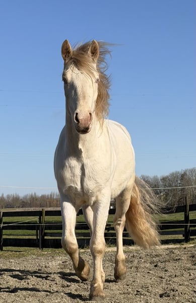 Deze charmante Connemara ruin is een prachtige jonge pony met veel bekijks! Hij is Geboren in 2023, en heeft momenteel een stokmaat van 147 cm, is hij perfect geschikt voor allround gebruik. Hij is Goed allround gefokt , met een prachtig Iers bloedlijn. Zijn opvallende Cremello kleur geeft hem een bijzondere uitstraling en maakt hem een echte eye-catcher. Deze jonge pony is goed socialized en heeft een vriendelijke, nieuwsgierige aard. Hij is nog volledig groen , toont wel al veel talent en bereidwilligheid om te leren. Dankzij zijn gemakkelijke leergierig karakter en goede basisconditie is hij ideaal voor ruiters die een betrouwbare en gezellige pony zoeken voor als allrounder te gaan rijden. Kortom, een veelbelovende Connemara ruin met een zeer speciale kleur in zijn rassoort! En een zeer vriendelijke instelling, is hij zeker klaar om verder opgeleid te worden tot een fijne metgezel voor allround gebruik. Een unieke kans voor ruiters die wil investeren in een jonge, veelbelovende pony met een karakter om enorm van te houden! ⚜️Een Droompaard voor heel veel paardenliefhebbers! ⚜️ Whatsappje gaat het snelst : +31645866198 HWDS Negatief! ✔️5-12-2025 hoefsmid ✔️4-12-2025 klinisch gekeurd ( mooi omschreven) ✔️29-01 wormenkuur equest Pramox