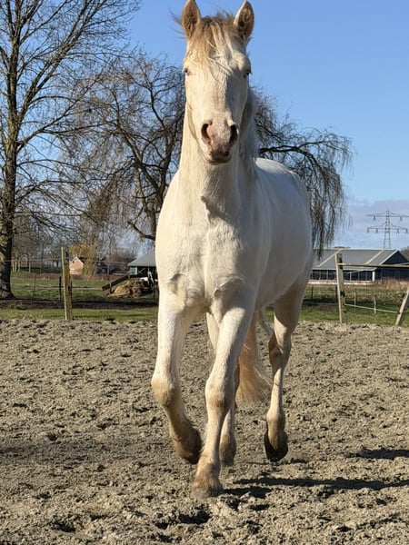 ⚜️ CLEENDARGAN MAX ⚜️ ✔️ Age: born in May, 3 years old ✔️ Gender: Gelding ✔️ Height: currently 1.47 m ✔️ Clinically approved ✔️ Recently received a heavy deworming treatment ✔️ HWDS N/N ✔️ Entire bloodline consists of top-class Connemaras 🐴 Max is a charming Connemara gelding that many riders will dream of. His striking Cremello color gives him a special presence and makes him a real eye-catcher. This young pony is well socialized and has a friendly, curious, slightly mischievous nature. He is still completely green but already shows a lot of talent and willingness to learn. ✨ His sire is (LOUGH MELVIN GORTEEN), a very well-known breeding stallion in Ireland with an excellent bloodline. ✨ His dam is (BROCK LODGE BUSTER). Many of his offspring perform at very high levels in show jumping (evening). 🔥 A unique opportunity for riders looking to invest in a young, promising pony with a character to love dearly! And someone who certainly enjoys a challenge! ⚜️ A dream horse for many horse enthusiasts! ⚜️ WhatsApp is the fastest way to reach me: +31645866198