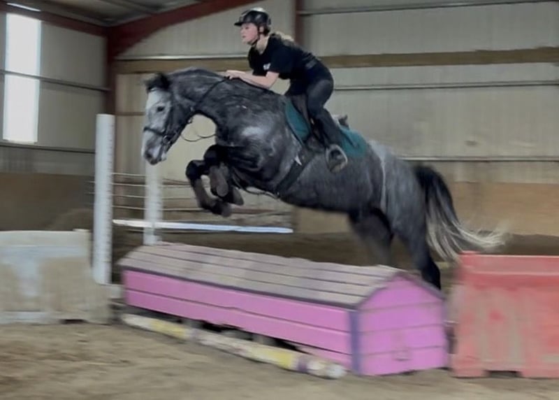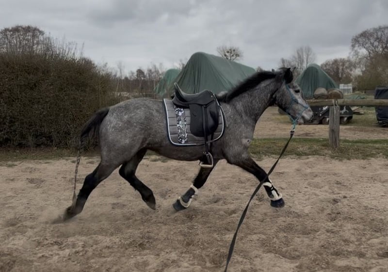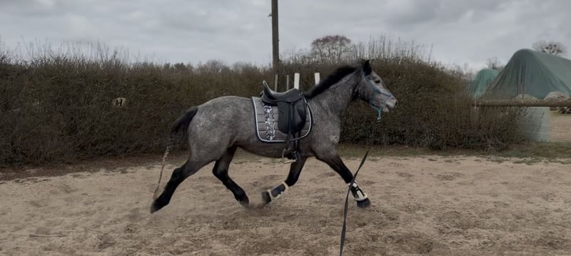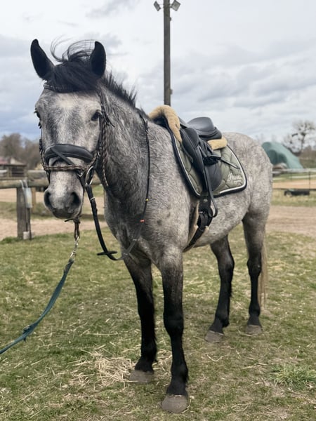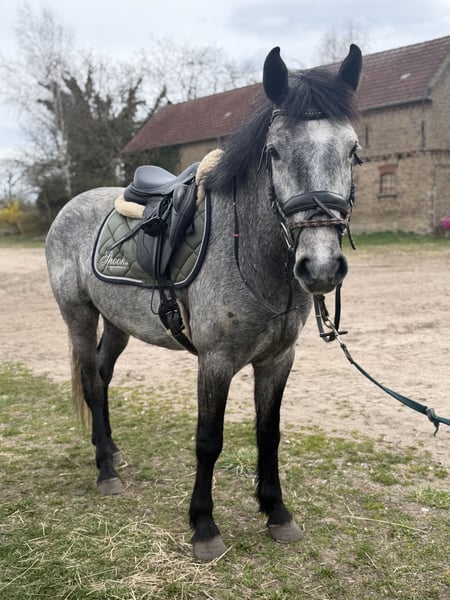 This incredibly adorable little treasure is looking for its dream home. Glacier is 4 years old, with an approximate height of 14.8 hh, and has a heart of gold. He is very easy to ride, always eager to please, and consistently strives to give his best. He possesses excellent nerves and moves with incredible grace. We can easily see him as a suitable pony for juniors or as a trustworthy companion for reiners. He has a great passion for jumping and is also very refined in dressage! In handling, he is extremely well-behaved and uncomplicated. Glacier is a true cuddle bug and very people-oriented. He is very talented, always eager to please, and happily goes out on trail rides! If you are looking to add a sweet, affectionate pony to your family, please feel free to contact us!
