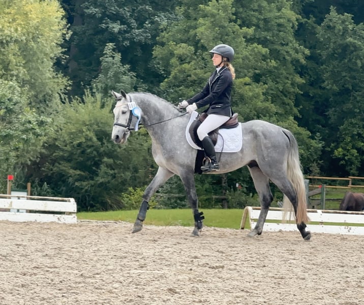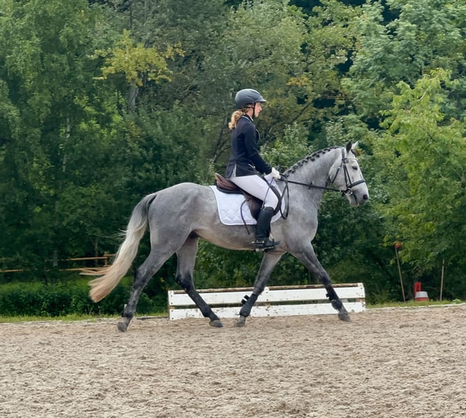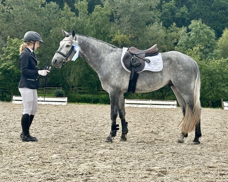 Lisbergs Prince Philip Lisbergs Prince Philip wurde am 10.04.2021 bei uns auf dem Gestüt geboren. Philip wurde um 5.16 h morgens als Rapp-Schimmel geboren. Seine Mutter Mask View Molly ist eine gut ausgebildete Connemara Stute, die bevor sie zu uns gekommen ist aktiv im Niederländischen Ponysport im Springen von der kleinsten Klasse bis 2 Sterne A und bis A in der Dressur unterwegs war. Sie führt seltenere Blutlinien in sich und verfügt über das beliebte Glencarrig Prince Blut, Ballyard Prince Blut und Rocklands Prince mit Hazy Dawn Blut! Lisbergs Prince Philip’s Vater Pattys Veuve Cosmic ist Hannoveranisch gekört, Bayrisch anerkannt und Süddeutsch gekört, er kann beste Blutlinien vorweisen und eine überdurchschnittliche Leistungsprüfung mit 8,2 absolviert! Ausserdem ist er ein erfolgreiches Turnierpony und ein braves Fahrpferd und hat inzwischen Weltweit Kinder- und Enkelkinder. Lisbergs Prince Philip wuchs sehr behütet auf unserem Gestüt erst mit seiner Mutter im Laufstall, später in einer altersgemischten Hengst- und Wallachherde. Seit er ein Fohlen ist regelmässig, entwurmt und geimpft mit Tetanus, EHV1,4( Herpes) und Pferdeinfluenza. Er war noch nie krank, Zähne wurden regelmässig kontrolliert. Philip wurde behutsam anlongiert, dann angeritten und er absolvierte im September 2025 seine 2-Tage-Kurzzeitprüfung auch Leistungsprüfung genannt mit 6,93. Das heisst er wurde im Freispringen geprüft, wurde in einer Dressuraufgabe geritten plus 1. Fremdreitertest, absolvierte am nächsten Tag einen Springparcours plus weiteren 2. Fremdreitertest. Philip ist am 22. November auf der Körung vorgestellt worden und wurde dort nicht gekört, da er mehr im Sportpony-Typ steht. Daher gibt es nun einen im Pony-End-Mass stehenden bald 5jährigen Wallach zu verkaufen. Zur Körung wurde er tierärztlich untersucht inklusive Beugeproben und Zähnen, er wurde bisher nicht geröntgt, dass kann im Rahmen einer Ankaufsuntersuchung dann der evtl. neue Besitzer machen lassen. Aktuell mehrfach gemessen 1,47 m gross. Philip wurde erfolgreich am 20.01.2026 kastriert. Lisbergs Prince Philip eignet sich hervorragend für den Ponysport oder für schon gut reitende Jugendliche oder zierliche erwachsene Reiter. Philip ist in der Dressur und im Springen auf dem Weg zu A, durch die Leistungsprüfung Ende September bestätigt. Er kennt ausreiten, etwas Hallensport( muss mit mehreren Reitern in der Halle noch geübt werden) kennt Waschbox, Einflechten, Solarium, Transporter- und Anhänger fahren, auch längere Strecken, Reitplatz, verschiedene Stallanlagen zum trainieren, hat keine Unarten und ist brav im Umgang und bleibt artig im Auslauf. Aktuell wartet Lisbergs Prince Philipp auf seinen Kastrationstermin, der leider wegen Krankheit des Tierarztes und Notfällen mehrfach ausfallen musste. Sollten Ihnen Lisbergs Philipp gefallen, wenden Sie sich bitte direkt an die angegebenen Nummern aus der Anzeige und geben Sie bei einer email Ihren Namen und Ihre Mobilrufnummer an- gerne können Sie uns auch direkt über Whatsapp unter 00491713415878 kontaktieren, in unserem schönen Ort funktioniert das mobile telefonieren leider nicht oder nur sehr schlecht! Das komplette Pedigree finden Sie in den Dokumenten wieder, da ehorses häufig Teile der Abstammung verschluckt. Pro Besuch auf unseren Betrieb erheben wir eine Kennenlern-Pauschale von 50€ und 70€ an Sonn- und Feiertagen müssen vorab bei Ankunft in Bar entrichtet werden! Liebe Grüsse und vielleicht bis bald - Gestüt Lisbergs ist immer eine Reise wert! Vielen Dank für Interesse! Ihr Gestüt Lisbergs