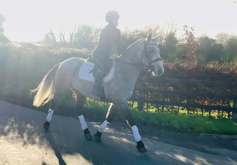 🌟 Beautiful 5-year-old Purebred Connemara Gelding – Quinn – 15hh (approximately 152 cm), Grey 🌟 Reserve Champion – Sligo County Show 2025 Quinn is a 5-year-old purebred Connemara gelding standing about 15 hands high, immediately impressing with his quality, presence, and fantastic temperament. He exemplifies the classic Connemara type – correctly built, with a solid foundation, substantial conformation, and three balanced, rhythmic basic gaits. His typical Connemara head with a bright, friendly eye completes his elegant appearance perfectly. ⸻ ⭐ Achievements & Potential Quinn has already proven himself successfully in the show ring, earning Reserve Champion at the Sligo County Show 2025. He consistently moves correctly, with a relaxed frame and natural presence, without being overwhelmed for his age. He is an excellent prospect for Connemara ridden classes, working hunter, dressage, eventing, or performance competitions. ⸻ ⭐ Character – Calm, Honest, and Absolutely Reliable Quinn possesses an exceptionally sweet nature. He is calm, straightforward, and confident, yet remains forward-going and a pleasure to ride. Even inexperienced teenagers can ride him comfortably. - Soft mouth - Easy to regulate - Never strong or hot - Motivated, attentive, and always eager to please - Honest character and very forgiving He is the perfect combination of confidence and sportiness – a pony you can trust and that also makes riding enjoyable. ⸻ ⭐ Jumping & Cross-Country Quinn has a great passion for jumping. - Frees over 1.20 m effortlessly - Brave, cautious, and extremely powerful - Very reliable in the cross-country phase - Tackles any task calmly and bravely – water, ditches, banks, combinations, etc. He has all the qualities needed for eventing, hunter trials, Pony Club, show jumping competitions, and would also make an excellent hunting horse. ⸻ ⭐ Cross-country Confidence Quinn is an ideal trail riding horse: - Well-behaved alone or in company - Traffic-safe - Calm on open fields - Enjoys long gallops and relaxed walking on a long rein - Enthusiastically jumps ditches and small natural obstacles He remains reliable even after several days off and requires no special preparation. ⸻ ⭐ Suitable For Whom? Quinn is perfect for: - A confident teenage rider - Mother-daughter teams - Someone looking to develop a talented young horse - Riders seeking an honest, sporty, and uncomplicated all-round pony He is a true all-round talent with potential for sport. ⸻ ⭐ Pedigree Quinn comes from excellent and proven Connemara lines: - Sire: Lough Melvin Gorteen - Dam line: Western Boy × Aran Flight He embodies the best qualities of the breed – intelligence, courage, willingness to perform, and an absolutely honest heart. ⸻ ⭐ Handling & Care Quinn is straightforward in every aspect: - No stable vices - Easy to shoe - Loadable without issues - Calm during grooming - Easy to catch - Pleasant in daily handling He is easy to manage and quickly adapts to new environments. ⸻ ⭐ Vetting, Price & Extras - Open to any veterinary examination - Price includes delivery to your yard in the UK - Exchange possible if you are not satisfied ⸻ 🎥 Watch the video to get a true impression! 📞 Phone: +353 86 807 7626 📧 Email: gertytynan@gmail.com