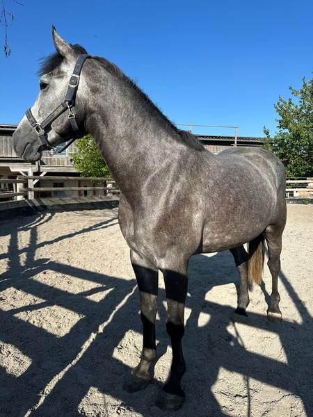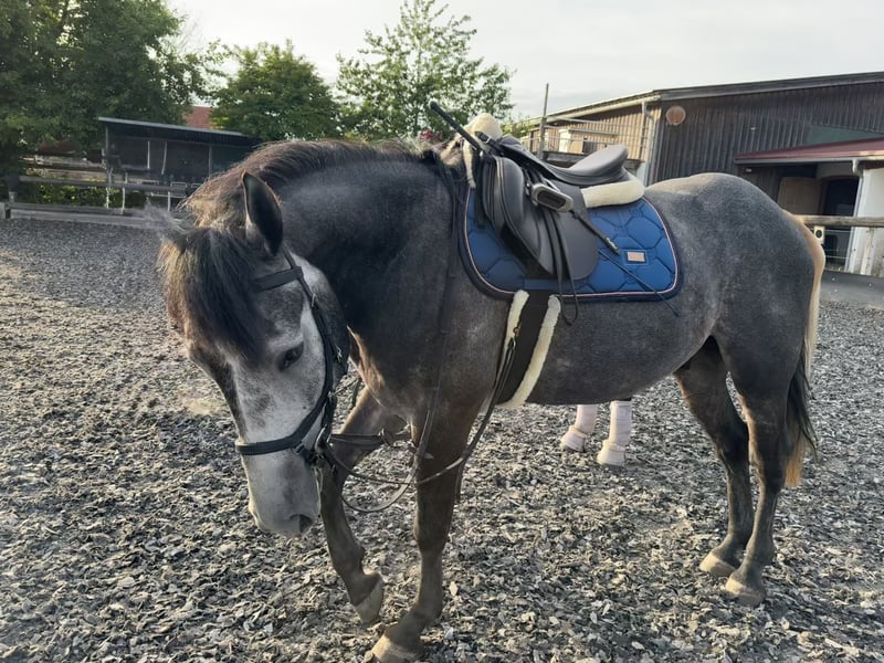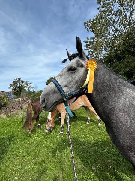 🌿 Charming Connemara Cross – Loyal Leisure Partner Seeks New Home 🌿 For sale is a 5-year-old Connemara cross gelding, approximately 16.1 hh, barefoot, trailer-safe, and a true sweetheart. He is ridden in the three basic gaits and has already gained initial experience in jumping training. Out in the field, he consistently proves to be well-behaved, eager, and attentive – without becoming hot. Whether alone or in a group, he is always motivated and reliable on the move. Character-wise, he is a sweet, affectionate, and dependable companion who brings joy with his charming personality. Always up for fun and with a listening ear! He is vaccinated, has a current health certificate, and has shown to be very robust and healthy so far – no illness or lameness to date. A wonderful horse for people seeking an honest leisure partner with potential. A dream home is sought for him where he can be truly happy. Ideally, a small herd in an open stable, provided it is suitable for lower-ranking horses. Alternatively, box stall housing with regular turnout is also an option – sufficient movement is important for him. Accessories such as saddle or bridle can be purchased separately.