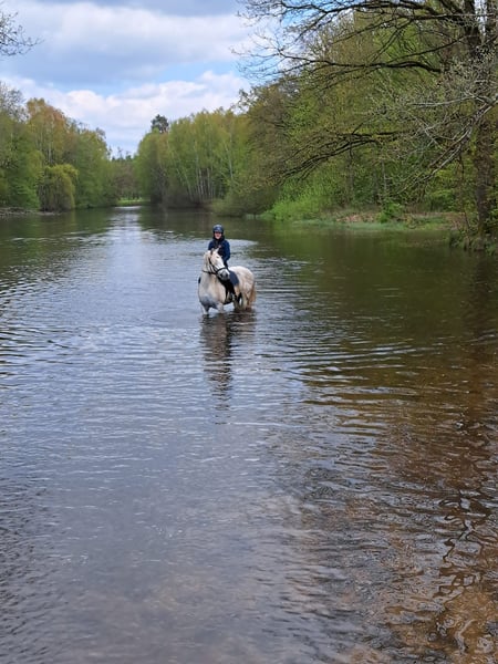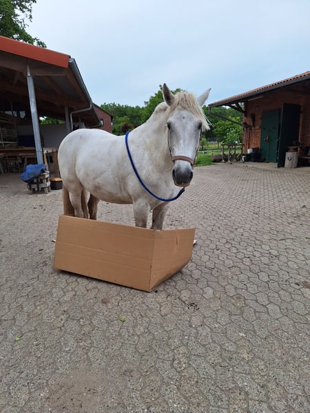 Meet Lady, a wonderfully sweet Connemara cross mare from Ireland. According to her passport, she was born in 2012 and stands 152 cm tall. She has a cautious yet affectionate personality, making her a truly reliable partner. I have competed successfully with her in dressage up to class A and have also driven her in competitions. She particularly enjoys the wippe on the Extreme Trail. She is versatile and willing to do anything, even crossing a horse-friendly suspension bridge. Due to minor physical issues, I am retiring her from sport and am looking for someone who can give her a loving home. She is not suitable as a weight carrier. Please contact me by phone after 5:30 PM. Emails will not be answered. For viewing, a fee of €40 will be charged, which will be deducted from the purchase price.