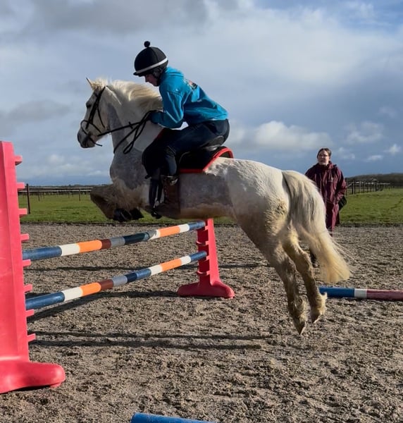 We bought this lovely pony as a project pony. As you can tell we can’t clip 🤣 THE CLIP WILL BE FIXED THIS WEEK. She walks like a dog on a lead you can hold the end of the lead rope and she will just plod next to you. She will stand there while you groom/tack up and so on tied or not. We have jumped her 1m at home and are showing her at 70cm. And will be doing more with her till she sells. We have hacked her alone and in company both complete saine and fine with she can get a little bit looks when alone but she will just look she won’t do anything. She’s never put a foot wrong. She is good for the farrier, vet and to load. Open to vet checks. She will have to be viewed before sold please.