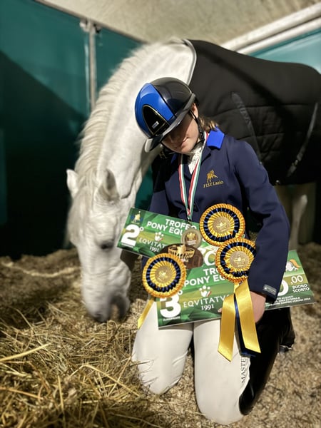 Z dużym żalem, ze względu na moją nową ścieżkę jeździecką we Francji, która uniemożliwia mi jazdę również we Włoszech, ogłaszam poszukiwanie nowego jeźdźca/jeźdźczyni dla mojego wspaniałego konia typu pony, Bracken Du Kyo (syn DEXTER LEAM PONDI). Bracken to dla nas nie był tylko zwykły pony – dał nam wszystko. Przyniósł wiele satysfakcji i ogromnych emocji podczas wielu zawodów, ale teraz nadszedł czas, aby znaleźć kogoś innego, z kim będzie mógł osiągać podobne sukcesy. Brack jest bardzo spokojny, jeździ bez problemu nawet sam, nie ma trudności z strzyżeniem, kontrola zdrowia i badania są aktualne, ostatnie zdjęcia RTG/USG wykonane niedawno, nigdy nie wykazywał agresji. Posiada paszport FEI. Obecnie Bracken może się pochwalić następującymi najlepszymi wynikami: * Trzy razy 0/0 podczas selekcji w Weronie 2025 * Reprezentacja Pucharu Włoch 2024 w skokach 110 cm * Indywidualny Puchar Włoch * Mistrzostwa Środkowo-Południowe 2024, z jedynym wynikiem triple zero w kategorii * Puchar Lazio pony élite * Finał Regionalnego Projektu Sportowego * Klasyfikacja generalna indywidualna w Weronie 2024 * Puchar regionów w Weronie 2024 * Reprezentacja Ponylandia / Puchar Włoch 2023 * Selekcja Indoor w Weronie, jedyny pony z czystym przejazdem (115 cm) * Werona 2023 * Mistrzostwa Środkowo-Południowe 2023 * 6 przeszkód na Pony Master Show 2023 * Piazza di Siena 2024 * Challenge Pontedera * CSIP Narni * CSIP Valkenswaard * CSIP San Giovanni Marignano * CSIP Opglabbeeck * Trofeo Pony Lazio 100 i 105 cm * Trofeo Pony Lazio 120 cm * Finał projektu sportowego Lazio, klasa IV * Finał Mistrzostw Środkowo-Południowych 110 cm * Italian Champions Tour 115 cm * Finał Pucharu Włoch * Finał Projektu Sportowego Italia
