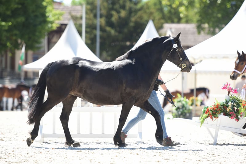 For sale: Connemara purebred filly, black pangaré, 1 year old. OPRAH des ZERAILLES. Sire: LUCIFER DES ZERAILLES (HARINGTON DE LA FAYE x SUN STAR SCHUERACHER) Dam: COQUINE (ECHO DE LA SCARPE) HWSD N/N by parentage. Expected to grow to a large D height. Well-handled, travels very well. Gentle and well-mannered. At just 1 year old, she participated in four breed and movement competitions: - Regional at ROSIERES AUX SALINES: won her class of 1-year-old fillies and earned the title of Reserve Junior Female Champion. - Inter-Regional at DIJON: OPRAH won her class of 1-year-old fillies. - National at POMPADOUR: won her class of 1-year-olds and was crowned Junior Female Champion. - International at WICRATH in Germany: 3rd place in the 1-year-old fillies class. Up-to-date on all vaccinations and deworming. Available for sale, transportation possible.