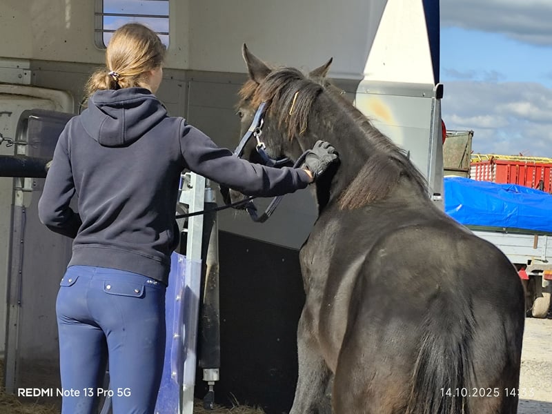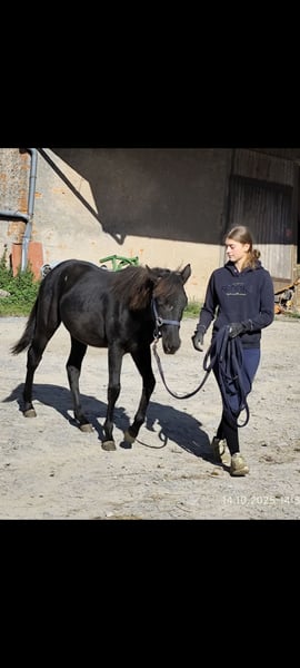 For Sale: Connemara Cross Mare – Perfect for Leisure and Hobby Riding! This beautiful black mare was born in 2024 and impresses with her friendly nature and versatile suitability. Standing at 14.7 hands, she is ideal for riders seeking a reliable and charming partner. She is well-suited for recreational riding and delights with her gentle demeanor and willingness to learn new things. If you are interested or would like more information, please feel free to contact me.