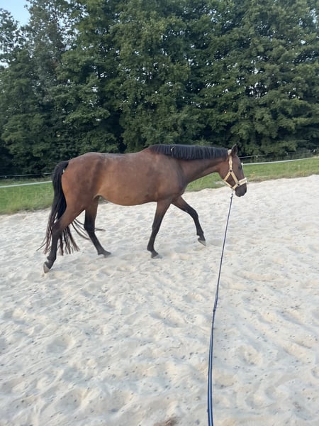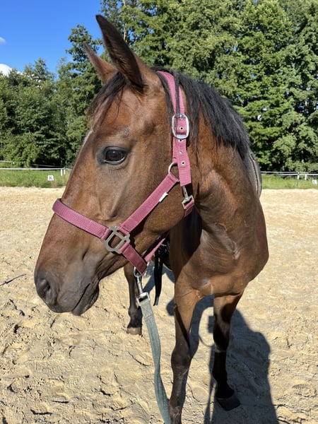 Kooperative und arbeitswillige Connemara-Mix Stute (Mutter: Dt. Sportpferd) sucht ihren Menschen, mit gefühlvoller Hand und der Freude, gemeinsam zu wachsen und durch dick und dünn zu gehen. Starlight ist in einem Offenstall aufgewachsen, kennt Trubel durch Reitschulbetrieb auf dem Hof und ist neugierig gegenüber neuen Dingen (auch Planen machen ihr keine Angst, siehe Foto). Das Einreiten wurde aus gesundheitlichen Gründen meinerseits pausiert. Sie kennt Sattel und Trense und wurde bereits mit Reiter im Schritt und Trab longiert. Sie will es einem immer recht machen und ist sehr lernwillig. Trotzdem braucht sie eine konsequente Hand die weiß, mit der Energie eines jungen Pferdes umzugehen. Spaziergänge klappen problemlos mit ihr und sie genießt es sichtlich in der Natur zu sein. Ein Pferd was einfach Spaß macht und leider aus persönlichen Gründen abgegeben werden muss. Sie wurde regelmäßig entwurmt und geimpft gegen Tetanus und Influenza. Sie ist Barhufer und wird auch hier regelmäßig dem Schmied vorgestellt. Ihre Zähne wurden im Herbst 2024 gemacht. Krankheiten hatte sie keine seit ihrer Geburt. Bei Fragen meldet euch gerne.