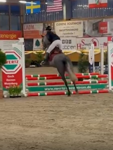 Nous cherchons une nouvelle maison pour notre jument de 6 ans, un mélange Connemara-Welsh. Elle mesure actuellement environ 1,45 m, mais elle est encore en croissance, tout en restant dans cette taille. L'année dernière, elle a été doucement monté en selle et elle participe maintenant à des parcours de saut d'obstacles jusqu'à 80 cm, avec quelques sauts isolés jusqu'à 1,15 m, montrant un potentiel excellent. Elle peut également sauter en liberté à des hauteurs plus importantes. Elle fait preuve de beaucoup de lucidité et possède une technique très solide. Elle se déplace aussi seule en terrain varié et franchit sans problème des troncs d'arbre, ayant déjà sauté deux fois dans l’eau. Elle connaît également la longe. Elle a été sans faute lors de ses trois premiers concours de saut d'obstacles ou de saut en style. Très douce en compétition, elle est vraiment adorable ! Même dans une grande halle d’exposition, elle reste très calme et obéissante. Elle est très facile dans tous les domaines, que ce soit pour le chargement, le maréchage ou la manipulation. Elle souhaite faire au mieux et est plutôt prudente dans sa manière d’aborder les choses. Elle est vaccinée, vermifugée, marche pieds nus et ses dents ont été récemment traitées. Nous souhaitons une cavalière sensible, un enfant qui sait déjà bien monter et qui pourra continuer à la développer. Si vous cherchez une perle brute, vous serez comblé. Elle connaît le paddock en plein air ainsi que le box, et elle est compatible avec des juments et des hongres. Pour des cavaliers débutants, elle n’est pas adaptée en raison de son niveau d’éducation. Vidéo sur demande.
