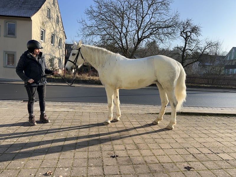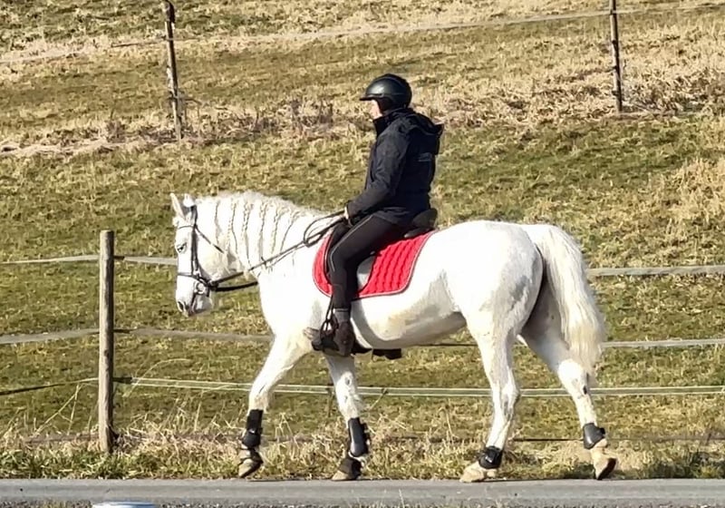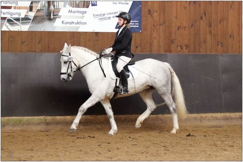 Cooperbeech Dutchess Cooperbeech Dutchess wurde am 28.02.2018 auf dem berühmten und sehr bekannten, aber feinen Cooperbeech Connemara Gestüt von Tomas und Fiona Grimes im schönen Irland geboren. Cooperbeech Dutchess, kam mit 2 Jahren zu uns auf unser Gestüt Lisbergs. Dutchess wie wir diese schöne Schimmelstute im Endmass von 1,47 m nennen und rufen, ist ein Traum, sie liebt die Menschen mehr als Ihr eigenes Kind. Dutchess hatte 4jährige Stute sich einen Backen-Zahn gespalten, der in der Tierklinik "Stephansmühle" von innen entfernt wurde, die Nachbehandlungen und Spülungen wurden von der Tierklinik Bamberg übernommen. Das ist inzwischen schon viele Jahre her ohne Folgen. Wir lassen Sie wie alle unsere Pferde einmal jährlich zahntechnisch untersuchen und behandeln. Dutchess hat am 16.11.2022 Ihre Leistungsprüfung in Ansbach erfolgreich mit 7,18 abgelegt, sie wurde bis 2 Tage vor der Prüfung auf Grund Ihrer Zahn-Op gebisslos geritten und fühlte sich damals mit der doppelt gebrochenen Ringtrense noch etwas unwohl. Heute ist das alles kein Problem mehr und Dutchess läuft super mit und ohne Gebiss auf guten A-Dressur-Niveau. Dutchess ist eingetragene Zuchtstute und hatte in 2024 ein wunderschönes sehr gutes gesundes Hengstfohlen von unserem Lettermuckoo Hazys. Der kleine Lisbergs Hercules wurde im Oktober abgesetzt. Da seine Mutter die Menschen mehr liebt, als das eigene Kind, haben wir uns dazu entschlossen unsere Dutchess als Connemara-Reitpony zu verkaufen! Leider hat der kleine Hercules, kurz vor dem Absetzen in einer Nacht, allen Zuchtstuten im Laufstall die Schweife abgebissen, diese wachsen jetzt bei jeder Stute nach und dies ist auch leider bei Dutchess noch deutlich zu sehen. Cooperbech Dutchess ist eine Tochter des sehr bekannten GLENCARRIG KNIGHT einen Stempelhengst der Irischen Connemara Zucht. Ihre Mutter COPPERBEECH STAR stammt ab von CLONBERNE BOY einen VILLAGE BOY-Sohn väterlicherseits und mütterlicherseits von CURRACHMORE CASHEL und GLENCARRIG PRINCE, nur um ein paar sehr bekannte Vorfahren in Ihrem Pedigree zu nennen. Dutchess's Eltern sind beide Class 1 und HWSD N/ N ist eingetragen ins 1 Hauptstammbuch des Verbandes der Pony- und Kleinpferdezüchter Hannover. Dutchess hat kein Sommerekzem und andere Unarten wie Weben oder Koppen! Dutchess reist reist sehr souverän mit Pferdetransporter oder im LKW! Sie ist ein ideales Pony für Leute die es später gerne grösser und kompakt haben möchten. Dutchess ist im Umgang eine echte irische Lady, immer freundlich - in der Gruppe verfügt sie über ein gutes Sozialverhalten und geht Streitigkeiten aus dem Weg, lässt sich aber nicht „mobben“. Dutchess verfügt über schöne raumgreifende Grundgangarten und einen sehr feinen Charakter in der Offenstallgruppe und im Panel-Boxenstall ist sie grundimunisiert mit EHV1,4 sowie Tetanus und Pferde-Influenza und regelmässig entwurmt. Dutchess eignet sich durch die Grösse für den Ponysport, Ponyspiele und durch ihre ruhige Art auch für den Therapeutischen Part der Reiterei, sowie als Reitpferd für grössere Reiter, da sie sehr stabil gebaut ist. Die Pause und das spätere Anreiten, hat ihr mental und körperlich sehr gut getan. Nicht vergessen, darf man das Connemara Ponies erst mit 7-8 Jahren komplett ausgewachsen und entwickelt sind, daher ist eine altersgerechte Reiterei ein Garant für lange Freude am Pony! Gut gepflegte Connemaras sind langlebig und 30 Jahre ist keine Seltenheit bei der Rasse! Dutchess ist gut longiert, artig altersgerecht geritten! Dutchess sehen wir allerdings, eher als Dressurpony oder Familien- oder Therapie-Pony oder Show-Pony, da sie es weiss sich zu präsentieren. Dutchess ist Barhuf! Dutchess liebt es sich in der Natur zu bewegen! Beim Auf- und Absitzen ist sie super entspannt! Auf Grund ihres guten Charakters und der Freundlichkeit gegenüber anderen Pferden und Hunden wäre sie auch ein gutes sicheres Geländepferd für einen nicht so starken Reiter auch mit Hund oder für die Reitjagd! Selbstverständlich geht Dutchess auch alleine ins Gelände, kann zu einer Gruppe hin und auch wieder weg geritten werden und kommt mit dem Reiter auf dem Rücken wieder nach Hause! Sie ist strassen-, gelände- und verkehrssicher auch mit schwächeren Reiter. Dutchess geht brav in Schritt und Trab und galoppiert auch im Gelände, allerdings in unser kleinen Halle und auf dem Platz fällt es ihr noch manchmal schwer den Galopp lange zu halten, aber im Gelände ist sie traumhaft lange zu galoppieren. Sollten Ihnen Cooperbeech Dutchess gefallen, wenden Sie sich bitte direkt an die angegebenen Nummern aus der Anzeige und geben Sie bei einer email Ihren Namen und Ihre Mobilrufnummer an- gerne können Sie uns auch direkt über WhatsApp unter 00491713415878 kontaktieren, in unserem schönen Ort funktioniert das mobile telefonieren leider nicht oder nur sehr schlecht. Auf dem letzten Bild ist Dutchess Vater Glencarrig Knight zu sehen. Das komplette Pedigree finden Sie in den Dokumenten wieder, da ehorses häufig Teile der Abstammung verschluckt. Pro Besuch auf unseren Betrieb erheben wir eine Kennenlern-Pauschale von 50€ und 70€ an Sonn- und Feiertagen müssen vorab bei Ankunft entrichtet werden in bar! Liebe Grüsse und vielleicht bis bald - Gestüt Lisbergs ist immer eine Reise wert! Gestüt Lisbergs