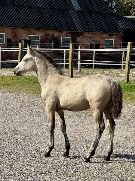 This expressive colt, "Borghorsts Fleetfoot," is looking for a new owner. Fleetfoot was weaned and raised appropriately on pasture within a herd of mares and foals. He is very herd-friendly and enjoys playing with the other foals. He is weaned and currently housed with four companions in a large box with paddock access. He has received a fall deworming treatment and his first vaccination. He is registered with the Schleswig-Holstein Horse Breeding Association as a premium foal, scoring a 9 for his expressive movement and an 8 for type and overall impression. At the Landesfohlenchampionat (Regional Foal Championship) of the Schleswig-Holstein Horse Breeding Association in Bad Segeberg, he was the champion of the Connemara Pony foals. Born on May 10, 2025, dark dun, HWSN/n/n. His dam, My Name is West Indies, is a state premium and performance mare. She passes on her excellent temperament and high rideability to her foals. His sire, Corclough Flazen, is a buckskin-colored, licensed Connemara stallion who has performed beautifully at many shows. Fleetfoot is a promising stallion candidate but will also excel in all disciplines of riding. Our foals are regularly dewormed, introduced to the farrier, and are halter-trained at the time of sale. We invite you to visit our stud to meet Fleetfoot and his friends. Price negotiable.