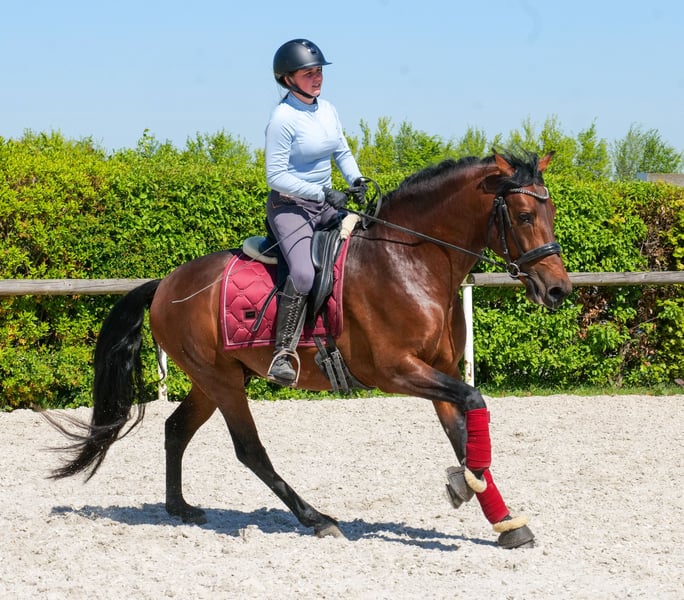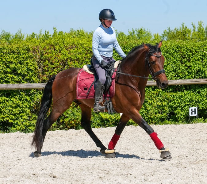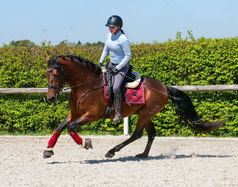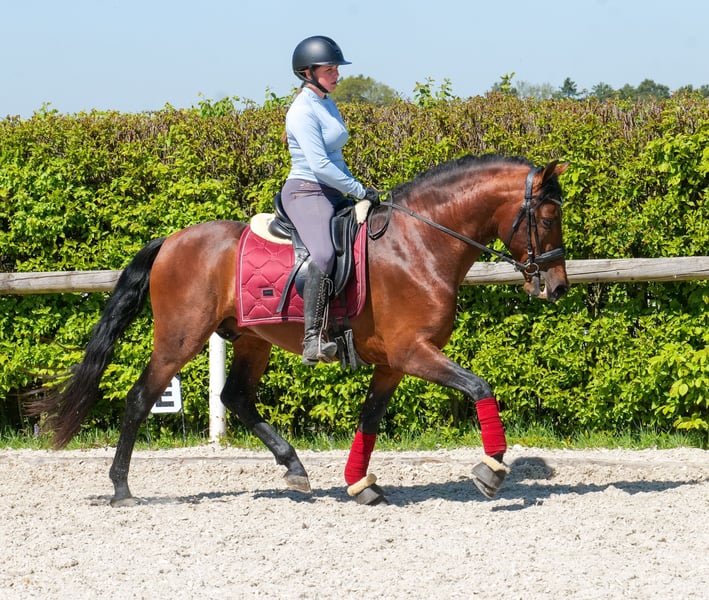 Name: Capitan Rasse: Cruzado (Kreuzung) Geschlecht: Wallach Geburtsdatum: 06.05.2021 Alter: 5 Stockmaß: 1.50m Farbe: Braun Abstammung: ohne Abstammungsnachweis Charakter: menschenbezogen, lernwillig, verlässlich, neugierig, intelligent, mutig, gelassen Ausbildung/Eignung: geritten, Dressur, Barock, Working Equitation, für Kinder geeignet Geländeerfahrung: zuverlässig, unerschrocken, nervenstark, alleine und in der Gruppe Gesundheit: entwurmt, geimpft, Barhufer, ekzemfrei, Zähne kontrolliert, osteopathisch behandelt Haltung: Box, Paddock Besonderheiten: gute Grundgangarten, sehr sitzbequem, schmiede und verladefromm, herdenverträglich Die genannten Eigenschaften beruhen auf unserer persönlichen Einschätzung und stellen keine zugesicherten Merkmale dar. Preis: 9900€ (Bruttopreis) Haben wir ihr Interesse geweckt? Um Ihnen einen besseren Eindruck von Capitan zu geben, senden wir Ihnen sehr gerne sein Reitvideo zu. Selbstverständlich stehen wir Ihnen für eine ausführliche Beschreibung des Pferdes, persönliche Beratung und zur Beantwortung aller Ihrer Fragen auch telefonisch zur Verfügung. Bitte schreiben Sie uns hierfür jederzeit eine WhatsApp Nachricht, oder rufen unter folgender Telefonnummer an: +49 15119487595 Unsere Telefonzeiten sind täglich von 7:00 - 13:30 sowie ab 20:00Uhr. Wir freuen uns über Ihre Kontaktaufnahme! Eine klinische oder Röntgenologische Ankaufsuntersuchung kann gerne vom Tierarzt Ihrer Wahl durchgeführt werden. Natürlich kann Capitan sicher und komfortabel in sein neues Zuhause geliefert werden. Wir kümmern uns um alle notwendigen Vorbereitungen und den Transport, damit Ihr neues Pferd stressfrei, gut betreut, versichert und wohlbehalten im neuen Zuhause ankommt. Zurzeit präsentieren wir eine sorgfältig ausgewählte Vielfalt an Verkaufspferden. Bei uns finden Sie garantiert Ihr Traumpferd. Besuchen Sie uns auch gerne auf unserer Homepage unter: www.marvinsroyalhorses.de. Sehr geehrte Kunden, gerne stellen wir Ihnen unsere Pferde vor und führen, putzen, satteln, longieren, Bodenarbeit sowie Probereiten in der Reithalle, auf dem Platz oder im Gelände ist Ihnen möglich, um Ihr neues Familienmitglied näher kennenzulernen. Dieses kostet für ein Pferd 40€, für jedes weitere 30€ und wird beim Kauf wieder erstattet. Unsere Adresse lautet: Grube Ferdinand 50 53577 Neustadt Wied Google Maps: marvinsroyalhorses