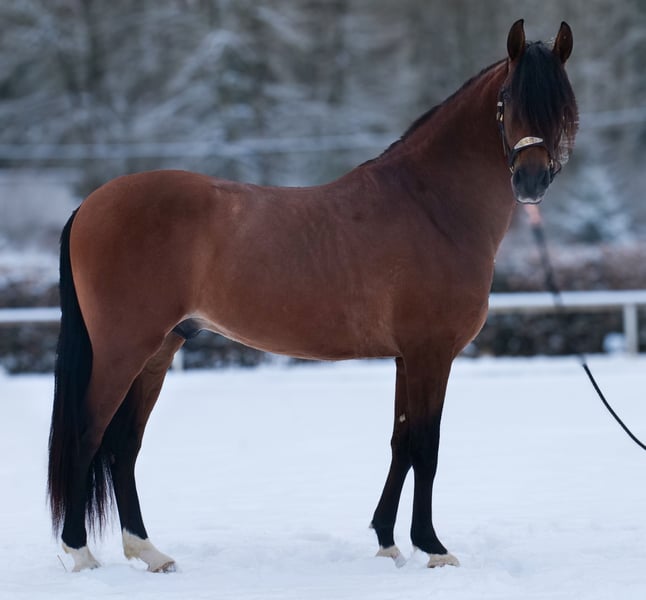Name: Taranto Breed: Crossbred Sex: Gelding Date of Birth: April 1, 2021 Age: 5 years Height: 1.58 m (approx. 16.1 hh) Color: Bay Pedigree: No pedigree documentation Temperament: Friendly and people-oriented, eager to learn, reliable, patient, curious, intelligent, brave, calm Training/ suitability: Under saddle, leisure riding, dressage, baroque riding, working equitation Trail Experience: Dependable, fearless, resilient, suitable for both alone and in a group Health: Dewormed, vaccinated, barefoot, eczema-free, teeth checked, osteopathically treated Stabling: Box stall, paddock Special Features: Good basic gaits, stands well for farrier and loading, herd-friendly Please note that the qualities listed are based on our personal assessment and do not constitute a formal guarantee. Price: €7,900 (gross) Interested? To give you a better impression of Taranto, we would be happy to send you a riding video. Of course, we are available for a detailed description of the horse, personal consultation, and to answer all your questions via phone. Feel free to contact us anytime via WhatsApp or call us at: +49 151 19487595. Our phone hours are daily from 7:00 AM to 1:30 PM and again from 8:00 PM. We look forward to hearing from you! A clinical or radiological pre-purchase examination can be arranged with your veterinarian. Taranto can be delivered safely and comfortably to his new home. We handle all necessary preparations and transportation so that your new horse arrives stress-free, well-cared-for, insured, and in good health. Currently, we offer a carefully selected range of horses for sale. With us, you are sure to find your dream horse. Visit us also online at: www.marvinsroyalhorses.de. Dear customers, we are happy to introduce you to our horses. You are welcome to lead, groom, saddle, longe, do groundwork, or try riding in our indoor arena, on the riding yard, or in the field to get to know your new family member better. This service costs €40 per horse, with each additional horse €30, and will be refunded upon purchase. Our address: Ferdinand Grube 50 53577 Neustadt-Wied Google Maps: marvinsroyalhorses