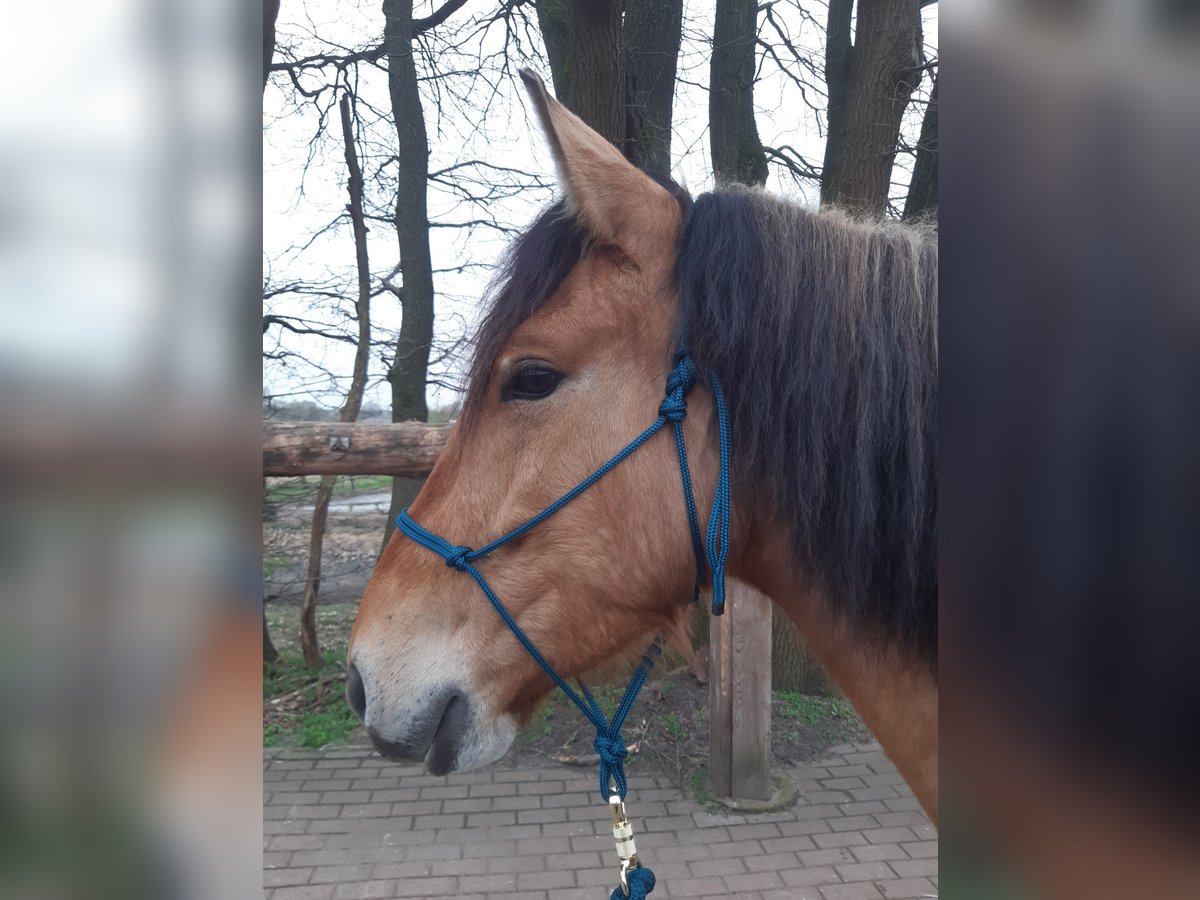 Cayetano, von mir Cayo genannt, ist ein sechs Jahre alter Cruzado Wallach (*2020). Mit der Fellfarbe Falbe (im Winter etwas dunkler wie Caramel), den hellen Strähnen in der Mähne, dem Aalstrich und den Zebrastreifen an den Beinen ist er ein absoluter Hingucker. Dazu kommt, dass er mit seinem stabilen Fundament und kräftigem Körperbau bei 1,56m Stockmaß ein Gewichtsträger ist. Cayo ist ein Freizeitpferd mit sehr sitzbequemen Gangarten. Der Trab ist butterweich zu sitzen. Er ist nach Horsemanship ausgebildet und wird dressurmäßig geritten. Vom Boden kennt er auch schon Schenkelweichen, Schulterherein, Konterschulterherein und parkt perfekt durch anlocken der Kruppe an der Aufstiegshilfe ein. Aus dem Sattel haben wir auch schon das Schulterherein angefangen. Er kennt es mit und ohne Gebiss geritten zu werden. Ebenfalls kennt er ein paar Trailhindernisse und die Pferdewippe. Aufgrund des Alters ist er kein Reitpferd für Anfänger oder für Kinder. Putzen und führen lässt er sich jedoch sehr gut von jüngeren und unerfahrenen Personen. Cayo benötigt einen erfahrenen Reiter, der sich in der Ausbildung von sensiblen Jungpferden auskennt und eine Einheit auch mal früher als geplant abbricht, da er gerade etwas neues gelernt hat und das im Kopf verarbeiten muss. Er lebt bei mir robust im Offenstall, auch bei -15°C ohne Decke. Er kennt auch die Boxenhaltung. Ich suche für Cayo ein neues Zuhause, in dem er sehr viel Auslauf zum Spielen und auch relaxen bekommt. Eine Unterbringung in der Box wäre möglich, jedoch sollte die Aufenthaltszeit im Freien größer sein. Vom Charakter her ist er ein sehr höfliches Pferd, aber auch sensibel. Er steht super brav am Anbinder, genießt das Putzen und gibt artig die Hufe. Wenn du Interesse an Cayo hast, freue ich mich über eine kurze Vorstellung von dir und der zukünftigen Haltungsform. Ich bin an einem guten Zuhause für Cayo interessiert und verkaufe nicht an Händler und Menschen, wo ich den Eindruck habe, dass er es dort nicht gut haben wird. Ich nehme mir gern Zeit, dir Cayo persönlich vorzustellen und gebe auch dir die Zeit ihn kennenzulernen. Um Reittourismus zum Wohle des Pferdes zu vermeiden, erlaube ich mir 15€ zu nehmen, die beim Kauf natürlich verrechnet werden. Mein Osteopath hat mich beim regelmäßigen Check darauf hingewiesen, dass sich bei Cayo momentan die Wachstumsfugen schließen und er für ein paar Monate so wenig wie möglich mit Reitergewicht belastet werden soll. Ein Probereiten ist daher nur kurz und nur im Schritt möglich und auch nur, wenn ich beim Kennenlernen merke, dass du als Käufer in Frage kommst.