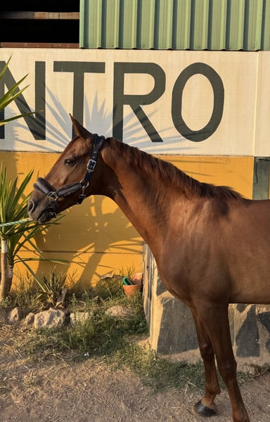 Caballo hispano árabe (de padre árabe y madre española) con 7 años de edad, pasaporte y 1'61 medido a bastón. Es un caballo que ha estado metido en todo tipo de eventos, ferias, Rocío, candelarias, etc. Está avanzado en doma vaquera: doma base, cesiones, apoyos, piruetas directas e inversas, medias, cambios de pie aislados. Ha concursado en varias ocasiones en la prueba de potros. Está completamente sano y no ha tenido nunca ninguna lesión, pero de todos modos, acepto prueba veterinaria. Se encuentra en Guarromán (Jaén) Abstenerse curioso, no es un caballo barato