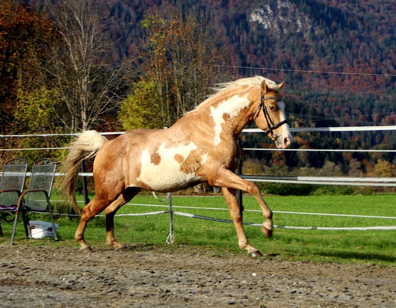 Bandit der Herzräuber Ein ganz besonderes Pferd sucht nun seinen neuen Lebensweg. Bandit ist ein wunderschöner und edler Cruzado Wallach mit einem ungefähren Stockmaß von 1.55 und 9 Jahren. Bandi überzeugt durch gewaltiges Gehorsam und absolute Rittigkeit. Er kennt einige Lektionen bis zur hohen Klasse. Bandi ist sehr vielseitig geritten. Egal ob Ausreiten, die Dressur oder das Springen er ist überall mit Köpfchen dabei und will immer gefallen. Der hübsche Herzensbrecher steht artig beim Schmied und ist derzeit vorne beschlagen. Willst du Bandit kennen lernen? Dann zögere nicht! +436804015730 6322 Kirchbichl Transport günstig möglich.