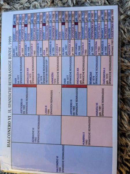 Galaan besticht durch sein Auftreten und natürlich durch seine Farbe. Ein quarakterstarker Wallach mit einem sonnigen Gemüt. Er lernt schnell und hat Spaß an Zirkuslektionen und Bodenarbeit. Auf dem Platz läuft er sicher in den drei Grundgangarten und die Veranlagung mütterlicherseits zum Tölt ist ihm auch in die Wiege gelegt. Geboren am 10.06.2016 Sein Vater PRE, seine Mutter RMH. Der Stammbaum von beiden sind aus den Fotos zu entnehmen. Bei Interesse kann ich auch noch mehr Bilder, von Mutter und Vater, sowie als Galaan Baby und Jungspund, senden Galaan ist ein ehrliches Pferd, das den Reiter lesen kann. Er ist absolut menschenbezogen, wenn er sich ersteinmal angeschlossen hat. Das muss man sich natürlich verdienen. Er kann spanischen Schritt, Kompliment, hinlegen, ect vom Boden aus. Apportieren kann er auch. Er ist hochintelligent und sensibel. Windfarbend Negativ auf PMMS2 getestet. Gesund und munter. Etwas mehr der Hippie als der Workaholic. Mit einem zweiten Pferd, dem er vertraut, geht er super ins Gelände. Alleine ist er guckig und mag nicht. Spazieren gehen wiederum kein Problem. Galaan ist ein echter Hingucker und ist auch charakterlich ein wahrer Goldschatz. Er steht in einer Wallachherde und ist super sozial und verträglich. Ein besonderes Pferd für eine/n besondere/n Reiter/in. !Bei Insta unter negroplatero gibt es noch einige Fotos und Videos von ihm! Galaan kommt direkt von seiner Züchterin zu mir und ist charakterlich völlig unverdorben. Er wurde von ihr gezogen, ist bei ihr aufgewachsen, hat das Fohlen ABC mit Liebe und Geduld gelernt und war dann bei ihr Zuchthengst, bis sie ihren Focus auf die Zucht von Arabianmountains anstatt Hispañimountains gelegt hat. Da kam er zu mir. Er wurde von mir mit 5 Jahren gelegt, nicht weil er nicht händelbar war, sondern weil ich ihn als Hengst kein artgerechtes Leben bieten konnte. Ich gebe Galaan nur ab, weil er eine/n starke/n Reiter/in braucht, der er vertauen kann, und ich aus gesundheitlichen Gründen das nicht mehr leisten kann. Ich kann sehr viel über dieses wunderbare Pferd erzählen, dich das würde Bände füllen. Aber wenn Du die richtige Person für ihn sein solltest, erzähle ich gerne mehr. Nur WhatsApp! Platz vor Preis